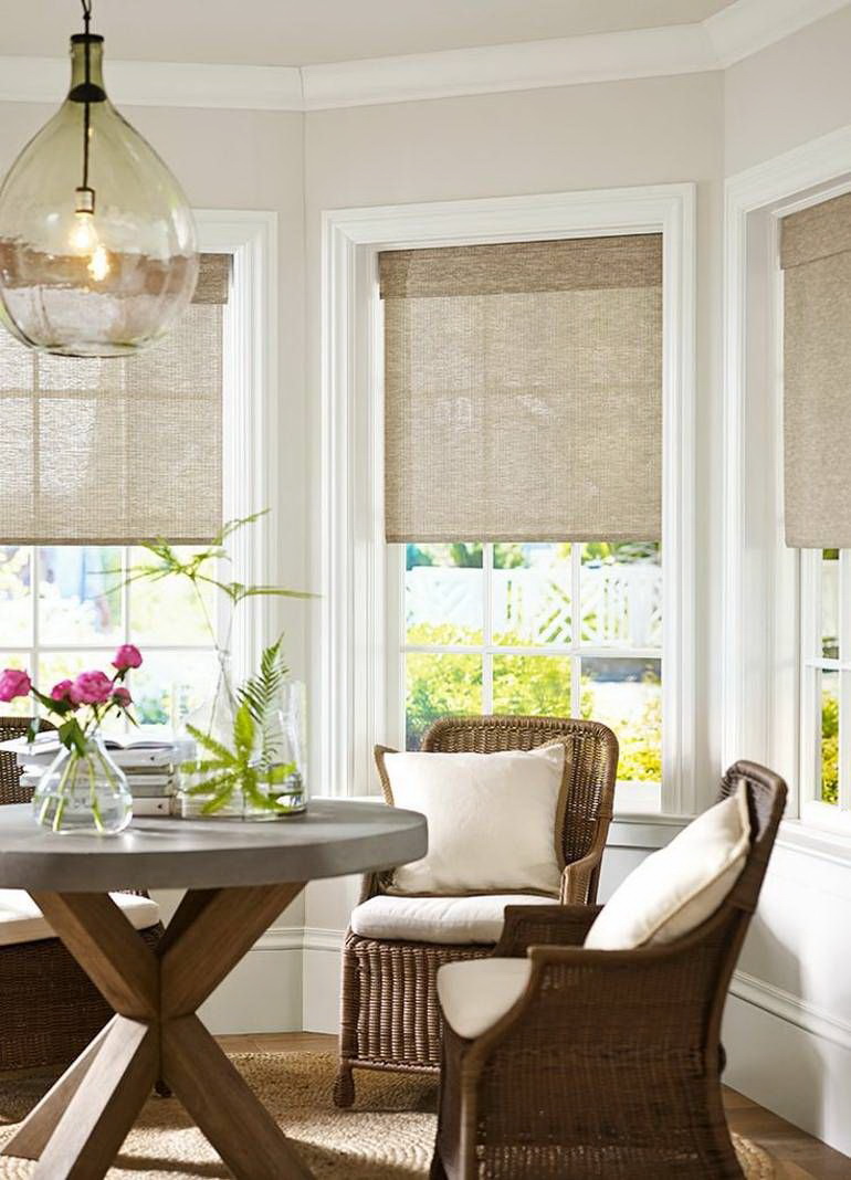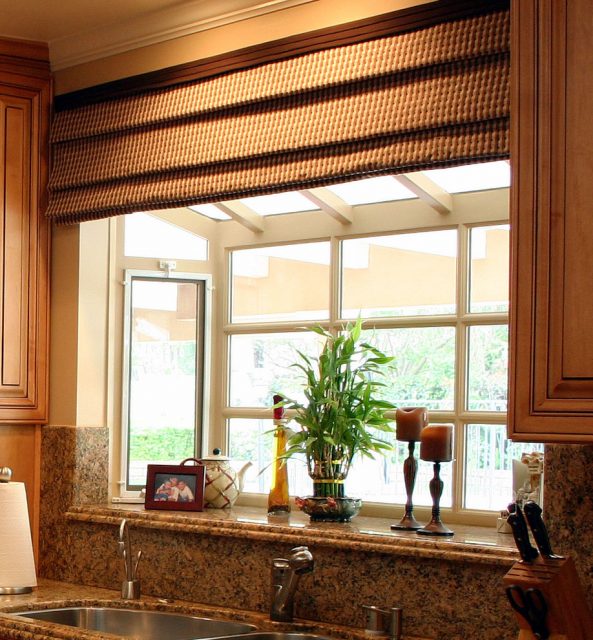 - Bambu cortinas - Agora uma escolha popular para coberturas de janela. Use um rolo para cada nível para economizar espaço extra e permitir total privacidade. Eles vão fazer um ótimo complemento para a janela da sua cozinha.
