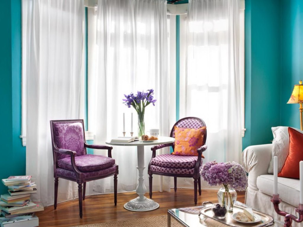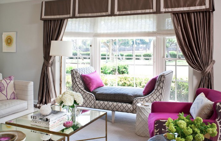 - Cortinas de vários níveis dê à sala um toque de luxo - uma grande oportunidade para um design sofisticado. Em vez de usar cortinas romanas brancas, apare os cantos com longas cortinas em seu tecido favorito. Isto irá adicionar o que você estava procurando.