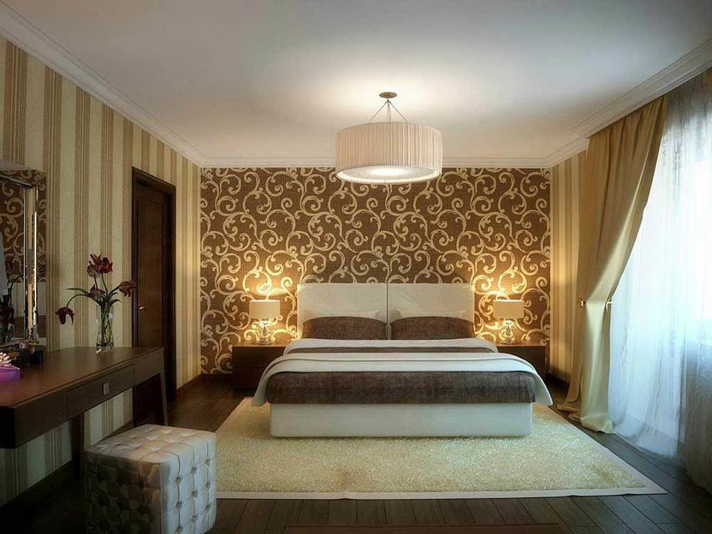 - Considere a altura e o layout da sala. Desenhos amplos, em larga escala ou tridimensionais tornam o quarto menor; listras horizontais têm um efeito semelhante. A melhor opção é padrões e motivos sutis ou pequenos que alongam a sala.