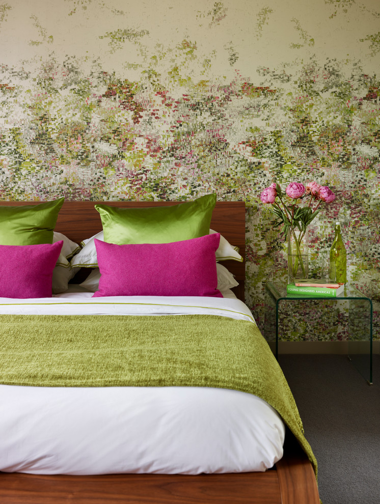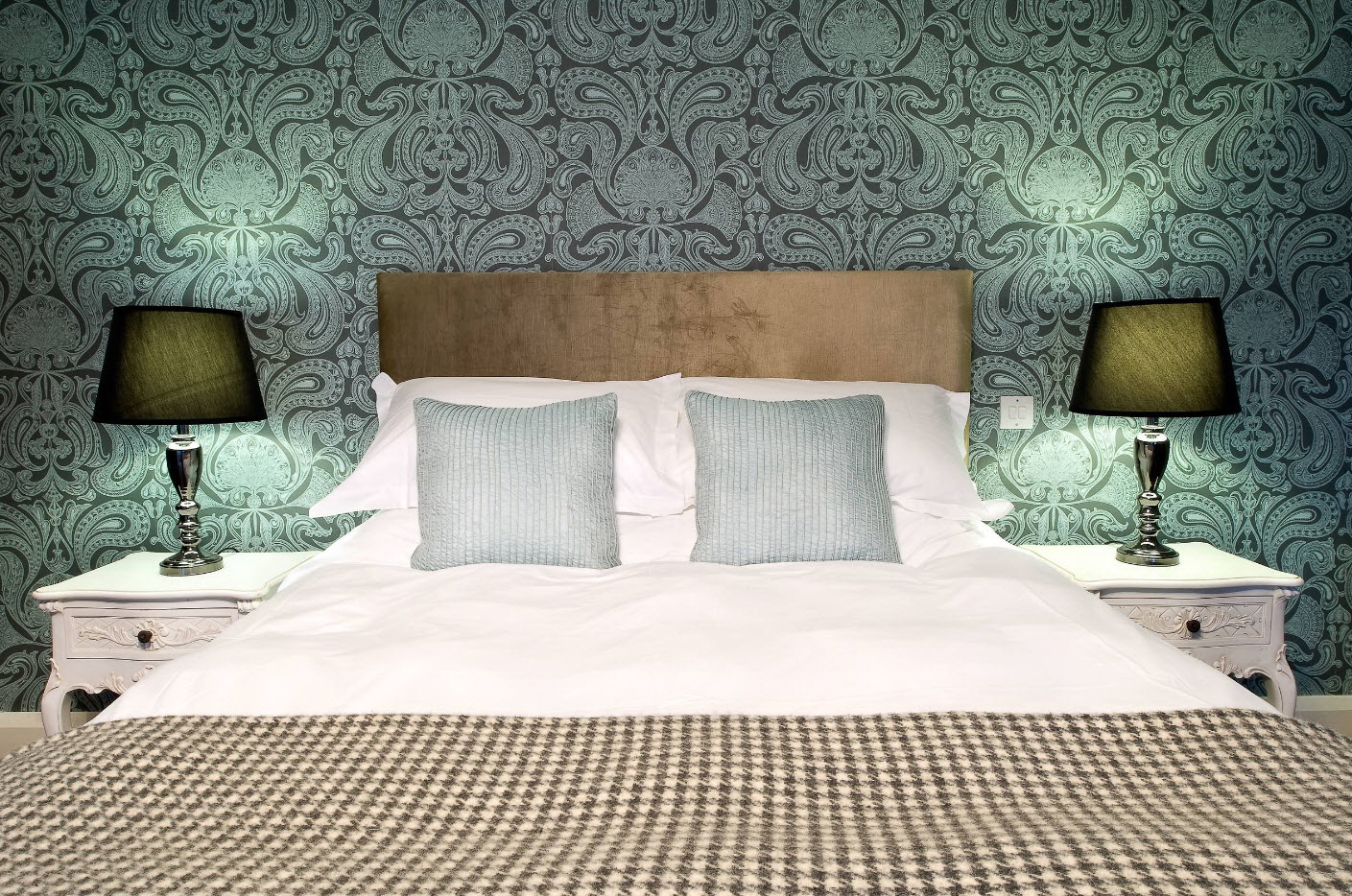 Papéis de parede geralmente não sofrem de condensação grave ou (com exceção dos quartos das crianças) danos potenciais. Portanto, eles podem ter qualquer material de superfície de sua escolha. Aqui estão alguns exemplos.