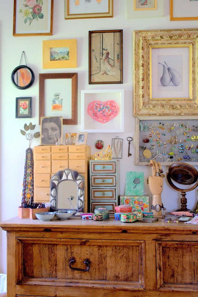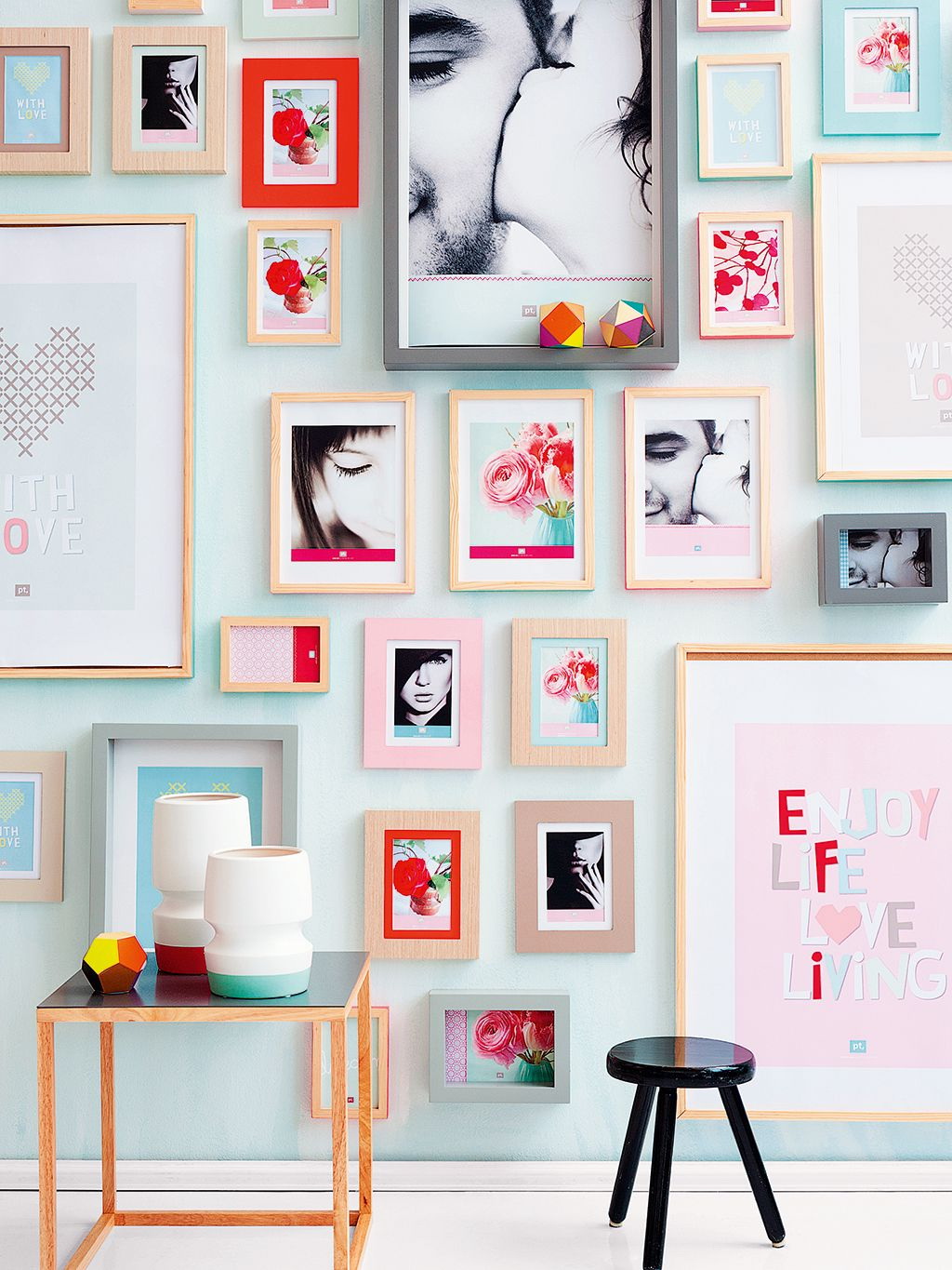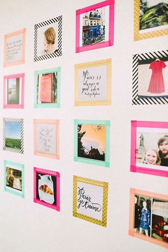 - muitas fotos em pequenos quadros podem ser usadas para criar algum ornamento na parede, por exemplo, na forma de um coração;