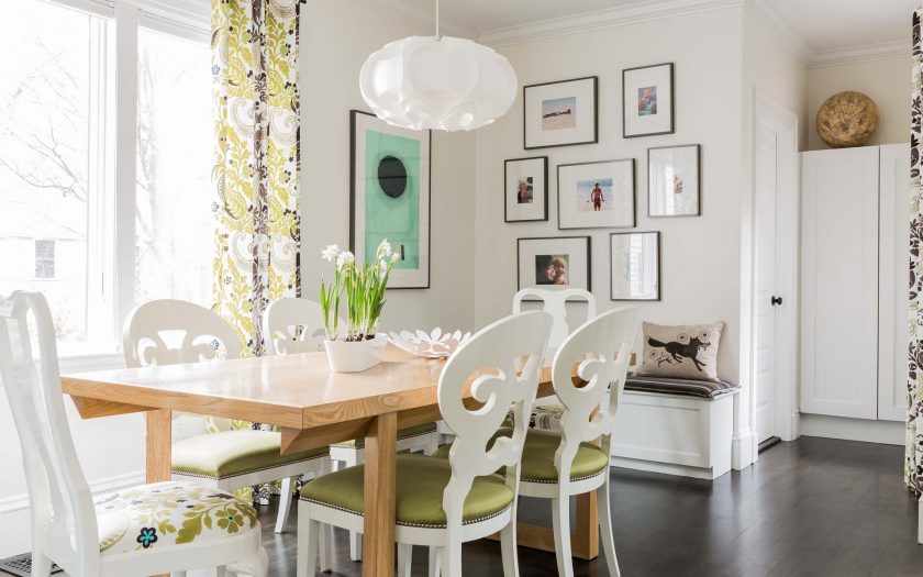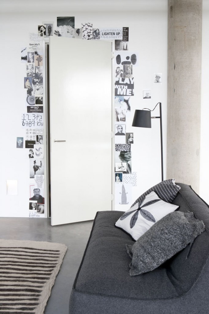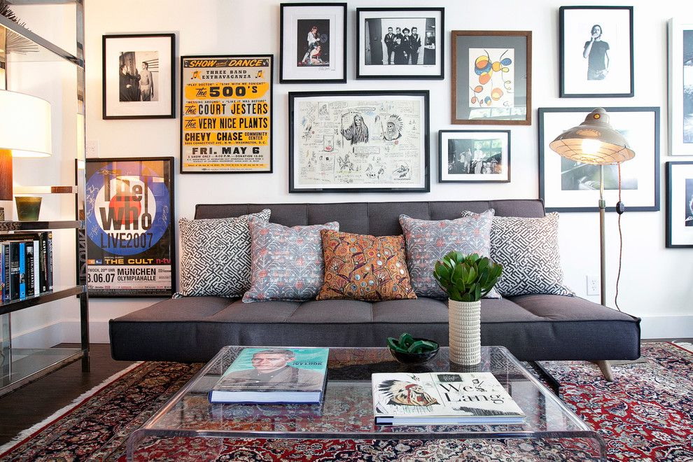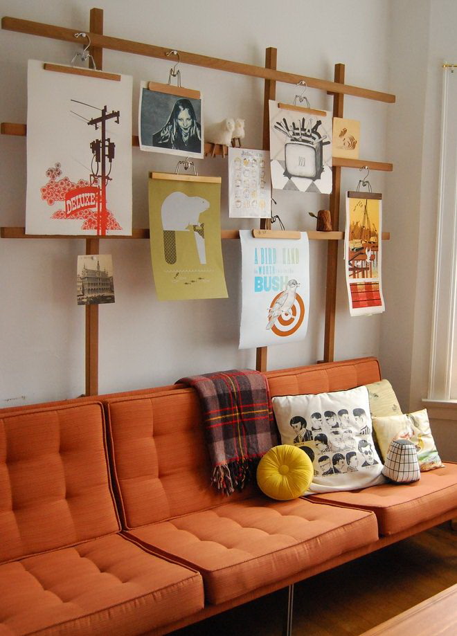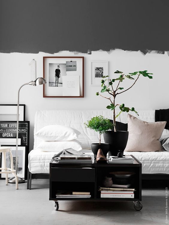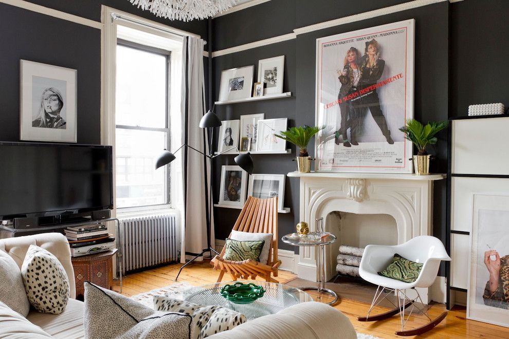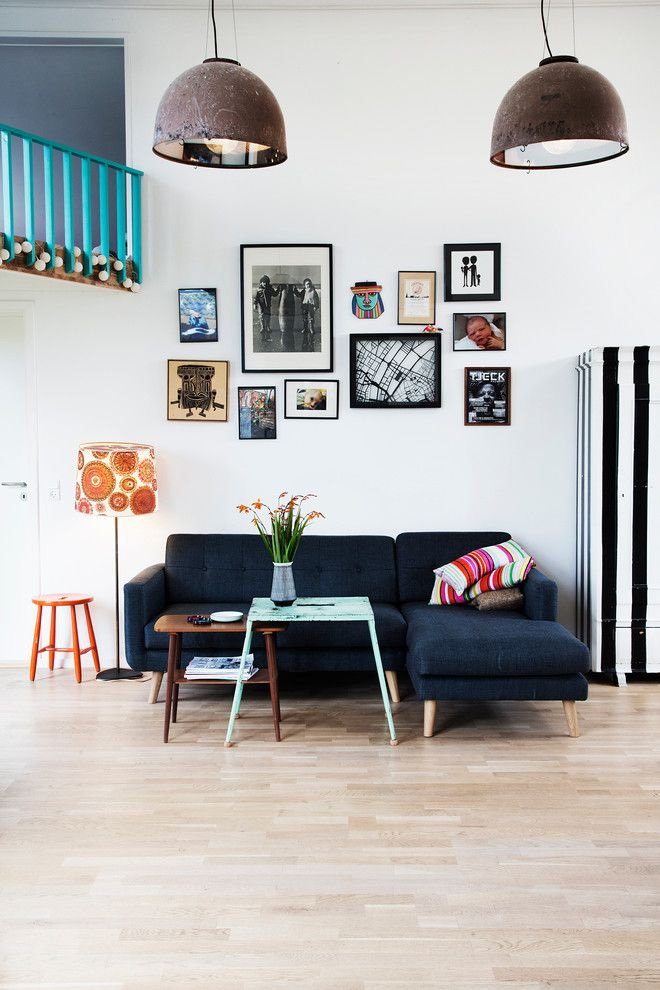 Perfeitamente carrega a sala com humor colocando fotos em preto e branco em um fundo monofônico brilhante. E cada foto deve ter um fundo diferente:
