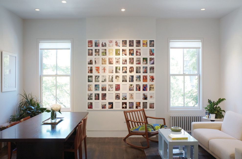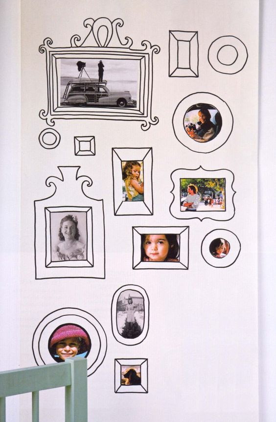 - seleção de fotos coladas diretamente na parede. Essa ideia pode parecer muito brilhante, interessante. Mas, com o tempo, essas fotos sem proteção podem, então, perder sua cor e simplesmente queimar;