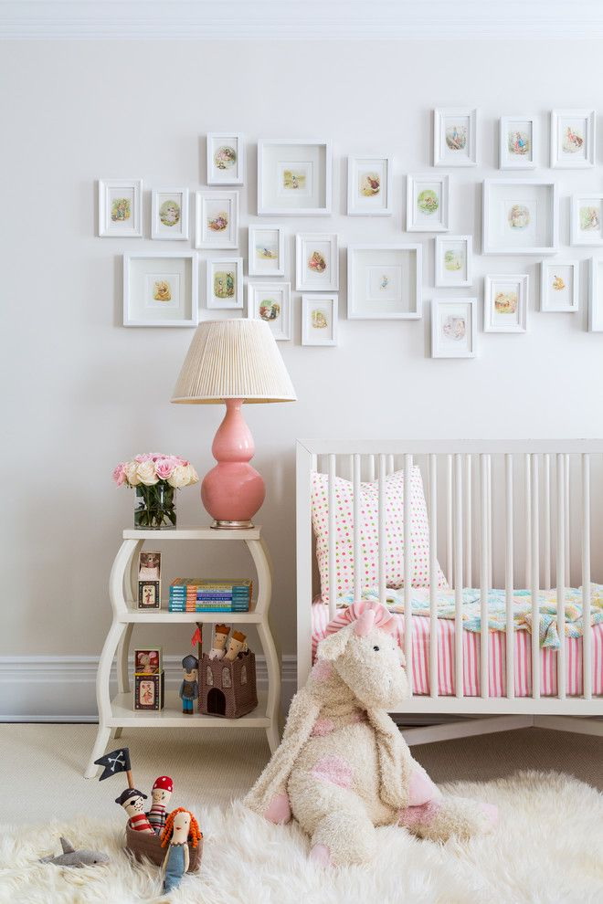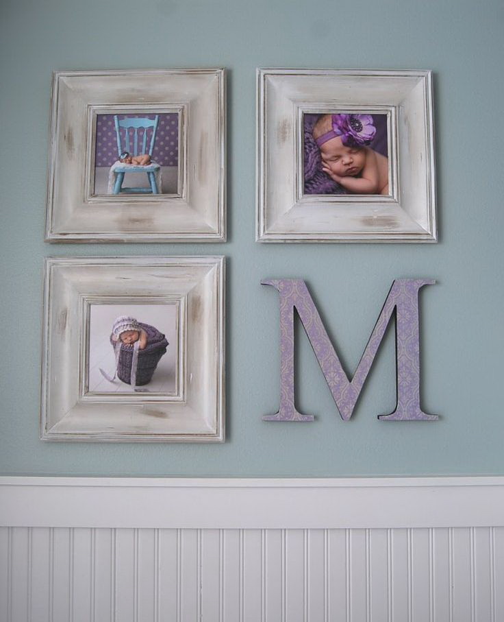 No berçário, você pode realizar várias idéias e experiências. Aqui, qualquer erro na veiculação pode parecer original e atraente. Quadros podem ser selecionados em vários tamanhos em formas, combiná-los juntos.