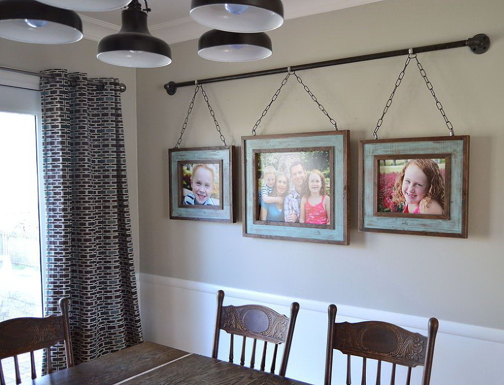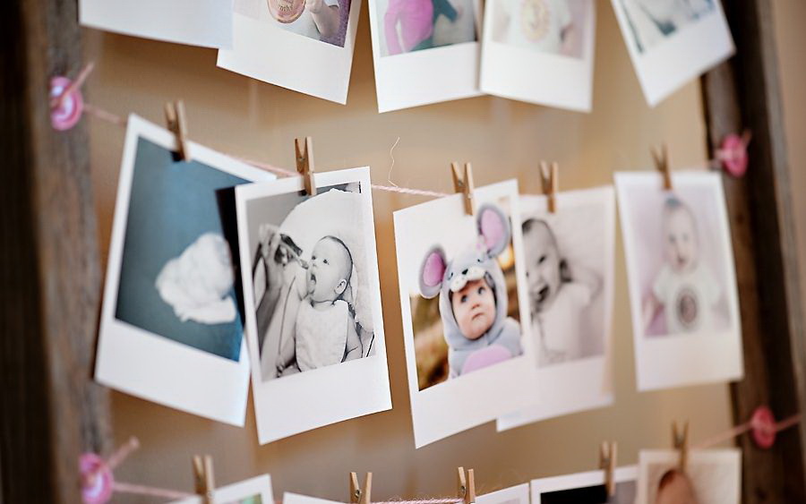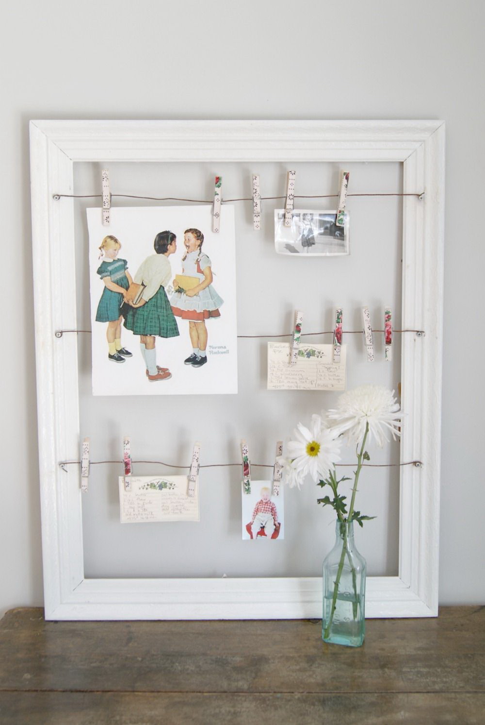 - muitas fotos pequenas em um prendedor de roupa parecem originais, se você colocá-las todas em um grande quadro maciço;