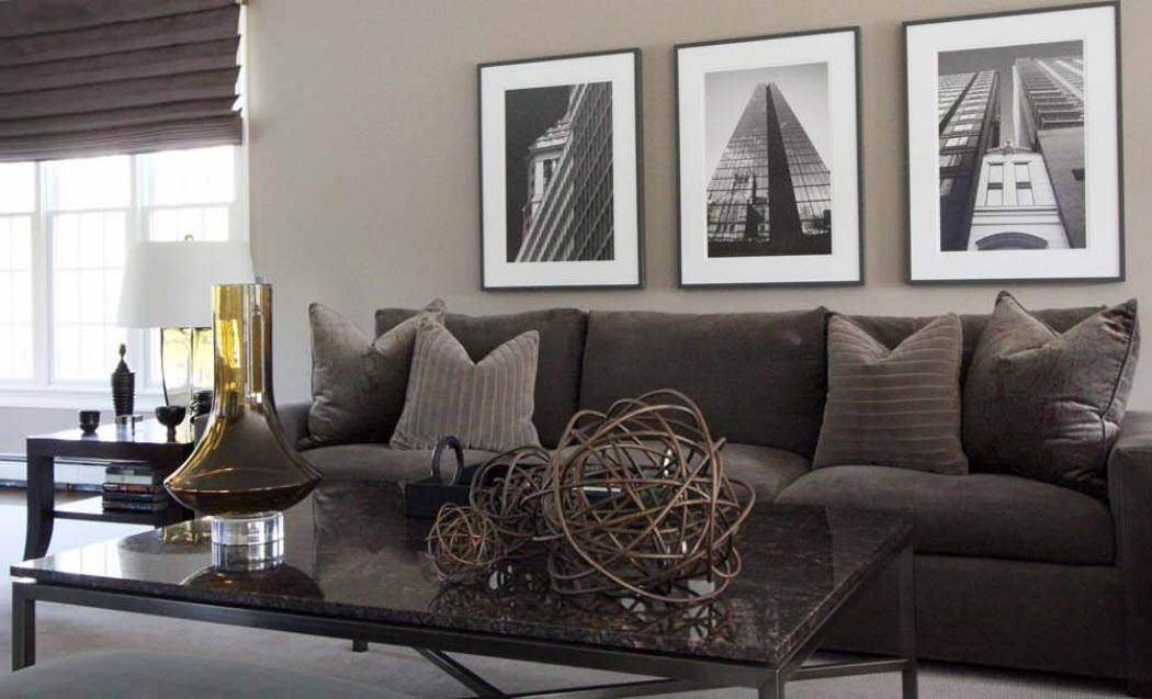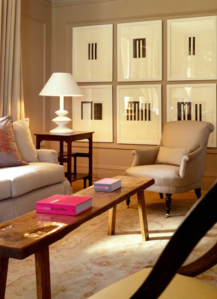 Portanto, se a sala não tem emoção, então a saída é colocar a foto nas paredes. É importante para a sala de estar aderir a um único estilo no tamanho dos quadros. É importante que tamanho ou cor eles serão.