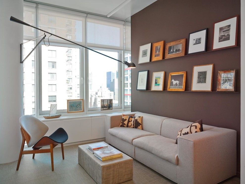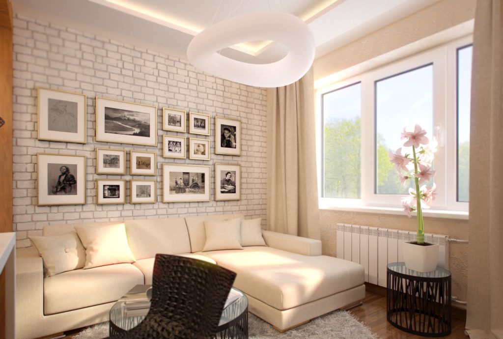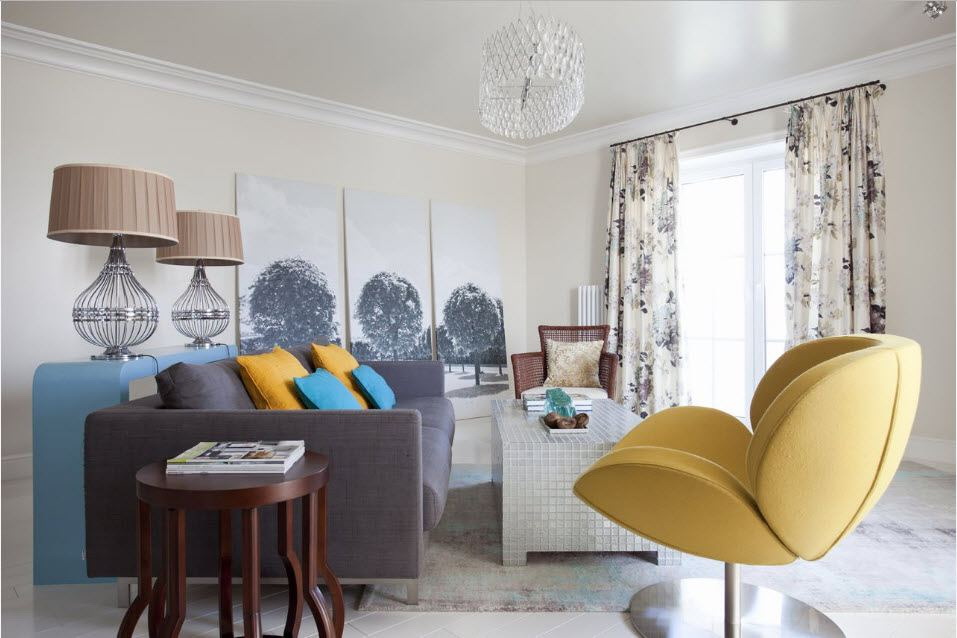 A sala está cheia de aconchego, quando as fotos da trama são colocadas na parede na ordem correta. Não menos atraente sala de olhar com uma boa colocação de abstrações.