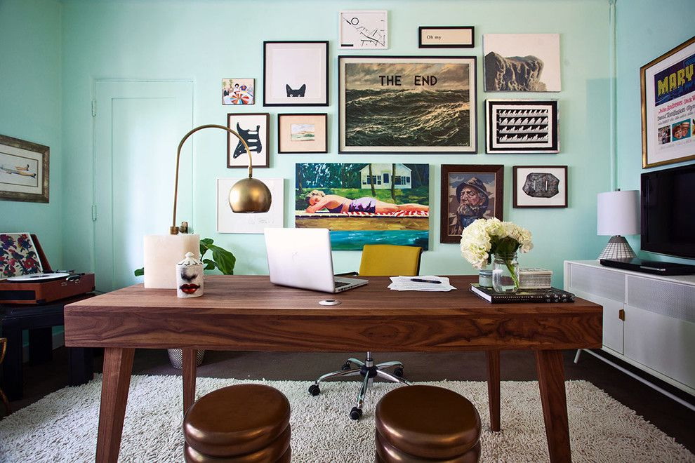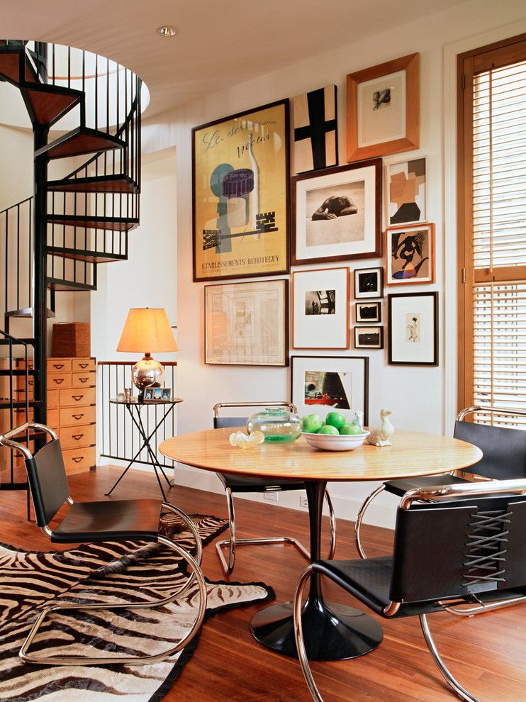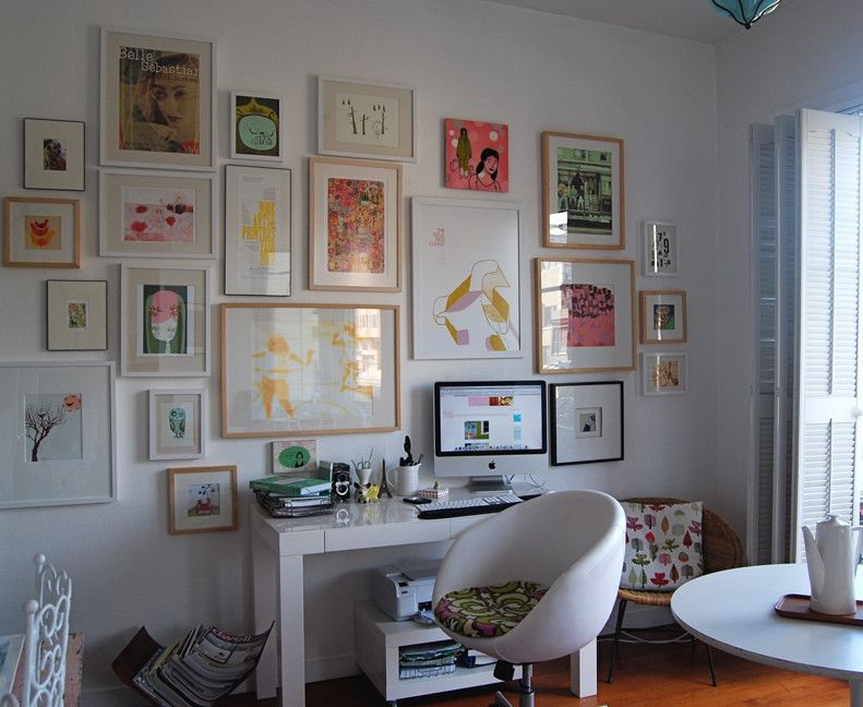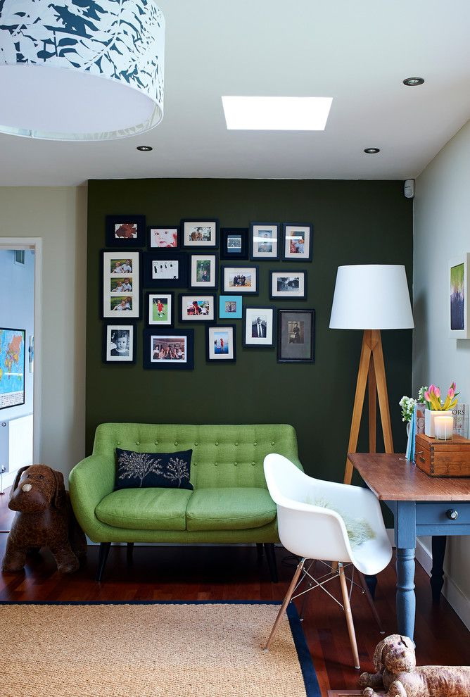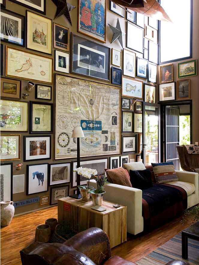 - Use uma variedade de quadros em um estilo para decorar a parede. Esta opção permite continuar a adicionar constantemente novas imagens à composição.