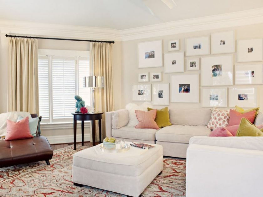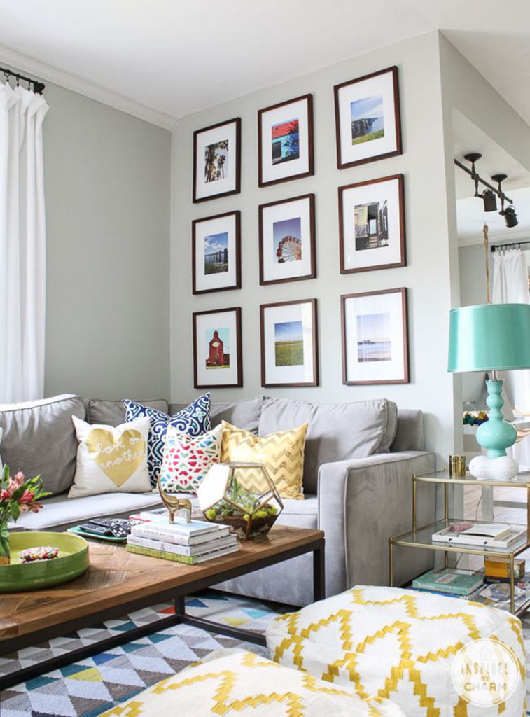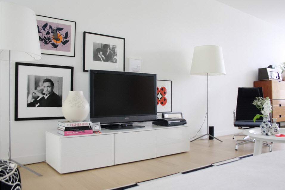 - ao redor tv - aqui pode trabalhar o princípio do equilíbrio ao colocar várias fotos. Normalmente zonaonde a TV é colocada é deixada em branco. Isso ajudará a preencher lindamente o espaço;