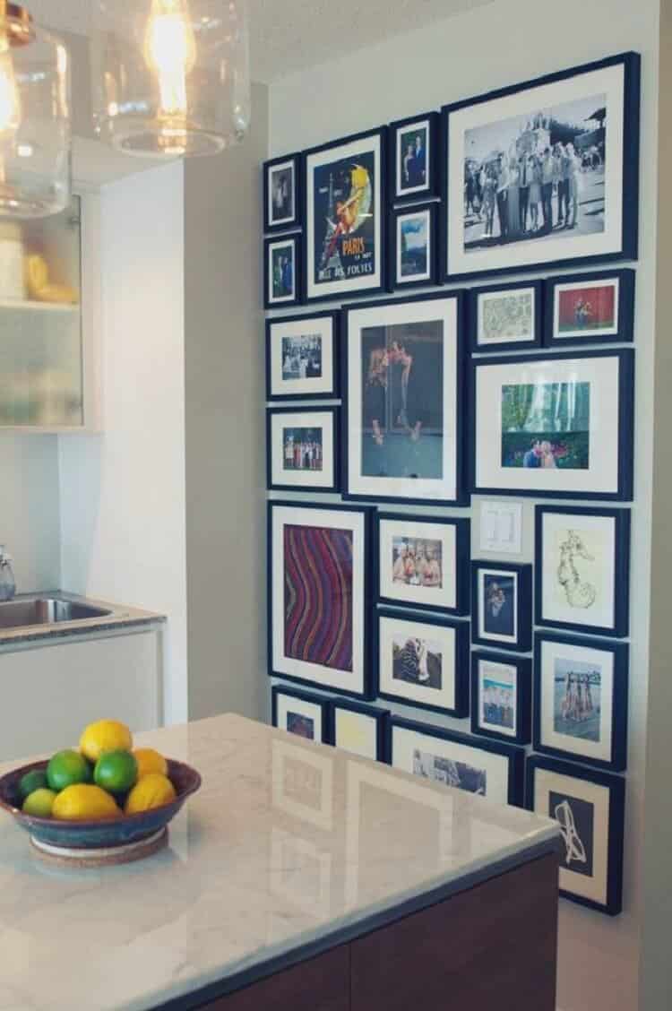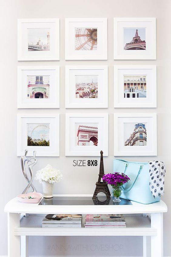 - Aquisição de molduras idênticas para criar uma composição sólida e discreta na parede.