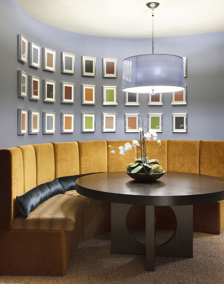 - Existem quadros de canto especiais para colocar fotos no canto da sala. É importante garantir que as fotos dos cantos não sobrecarreguem a situação se a sala não tiver espaço suficiente para a decoração padrão;