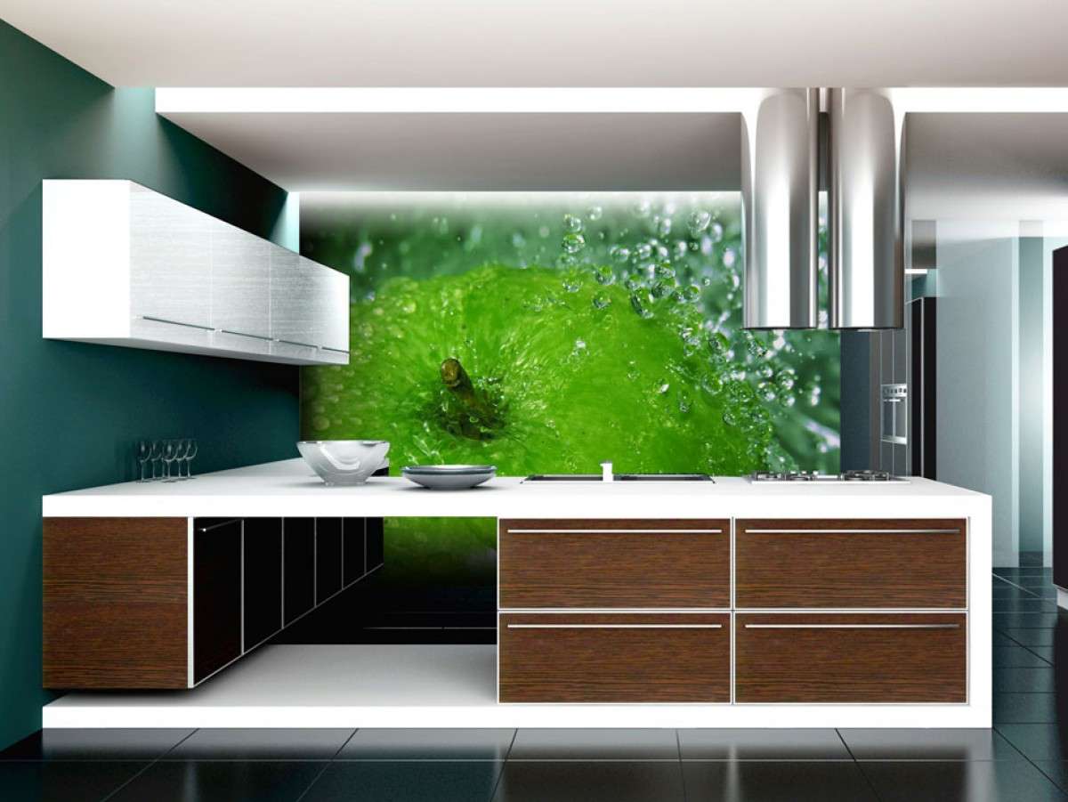 Papel de parede 3D - a maneira mais acessível para enfatizar a sofisticação da cozinha, que não requer grandes gastos. Usando a tecnologia de aplicar uma imagem volumétrica, você pode aplicar qualquer imagem. Eles irão: