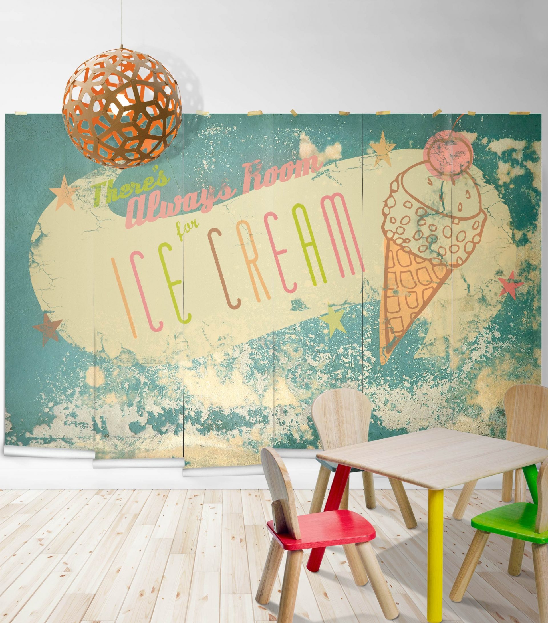 - Tamanhos No mercado soviético, todos os papéis de parede eram do mesmo tamanho, porque os apartamentos não diferiam em diversidade especial. Hoje, a imagem pode ser encomendada em qualquer formato, dependendo de onde você deseja desenhá-la - em uma parede livre, acima da superfície da cozinha, em qualquer outro local.