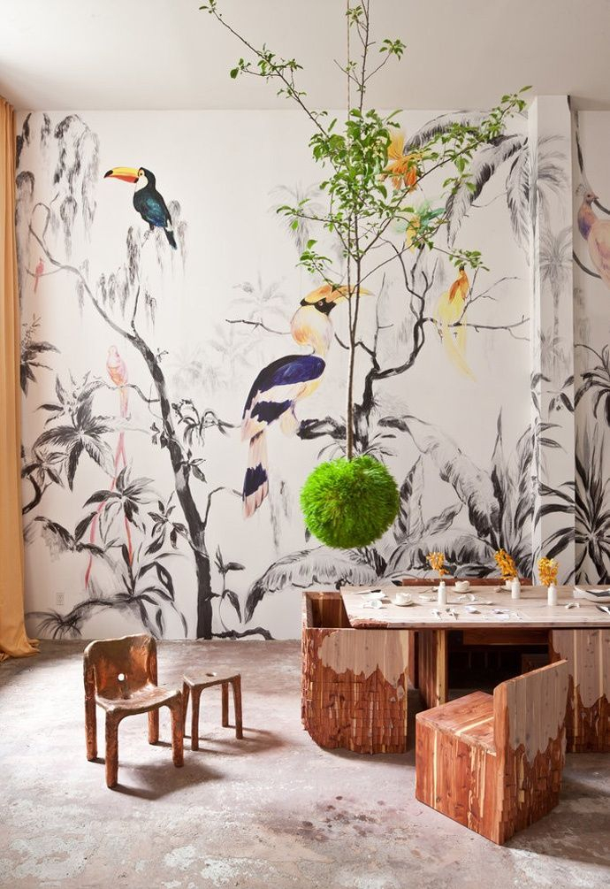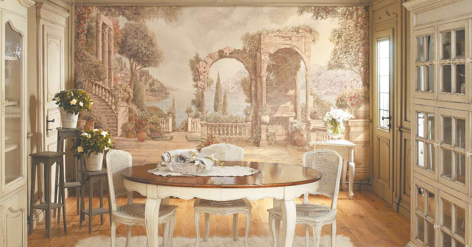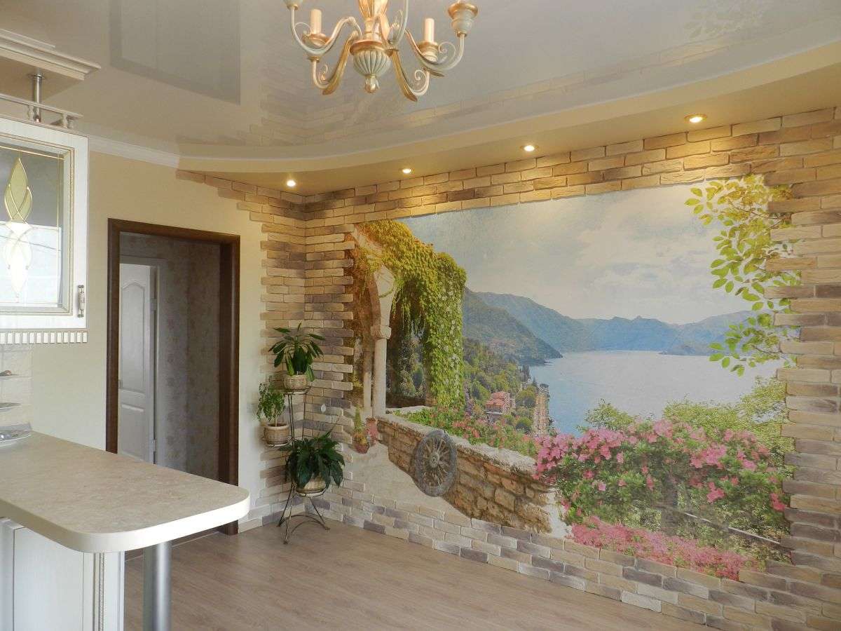 - Art.Estes papéis de parede não são uma imagem real, mas um desenho, em sua aparência, é imediatamente óbvio que é artificial. Há mais restrições sobre o uso de tais opções, elas não se encaixam em todos os projetos. Eles podem ser usados para cozinha moderna, feita no estilo mural, nos estilos de Provence, barroco e muitos outros, eles não são permitidos.