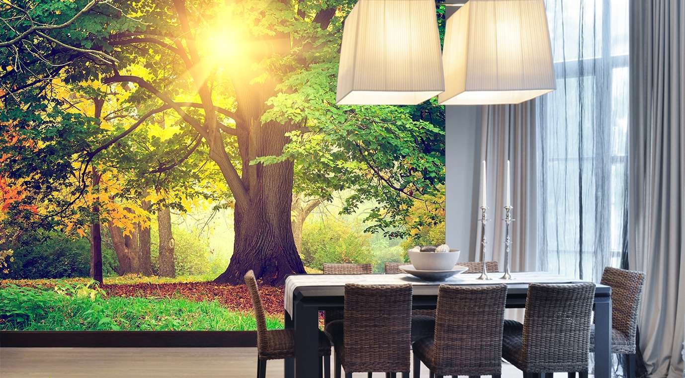 Photowall-paper com a natureza ainda permaneceu atual das amostras soviéticas, a grande diferença apareceu na qualidade e formato de imagens. As últimas tendências tornaram-se uma imagem aproximada dos elementos da natureza. Ao mesmo tempo, os amantes de paisagens padrão, desenhos de montanhas, cachoeiras e florestas também encontram soluções de design moderno.