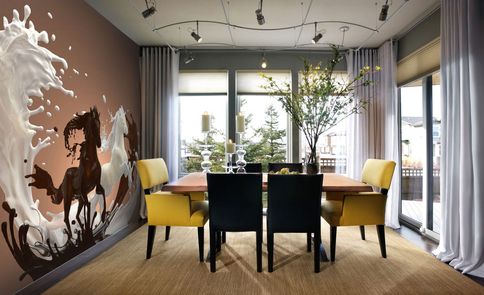 Pátios são especialmente populares entre os moradores de edifícios de vários andares que sonham em ter sua própria casa com um pátio, um gazebo em que você pode reunir nas noites de verão. Crie uma imitação de tal sonho com a ajuda da imagem do pátio na parede.