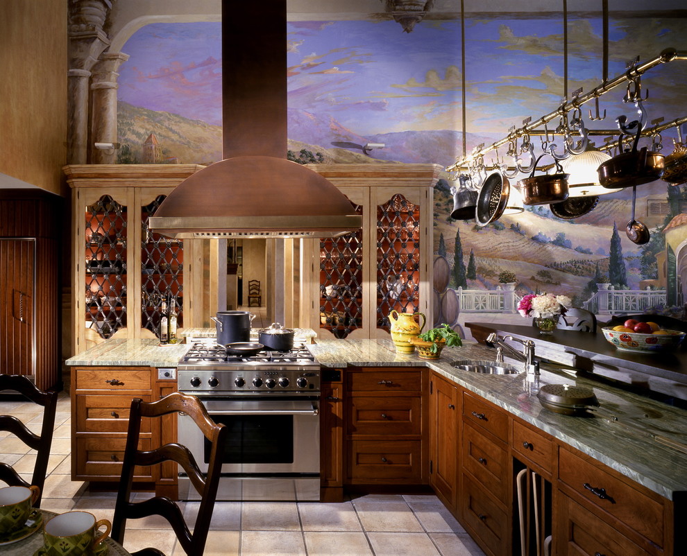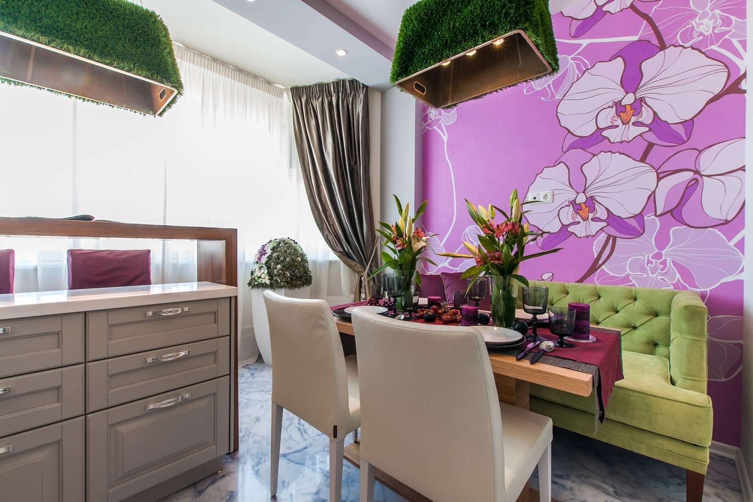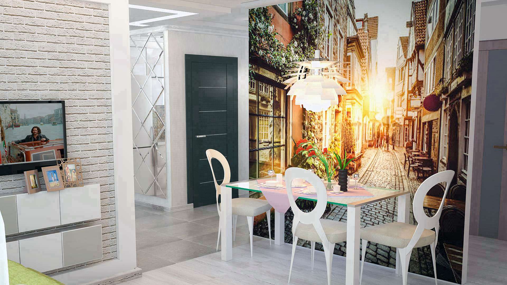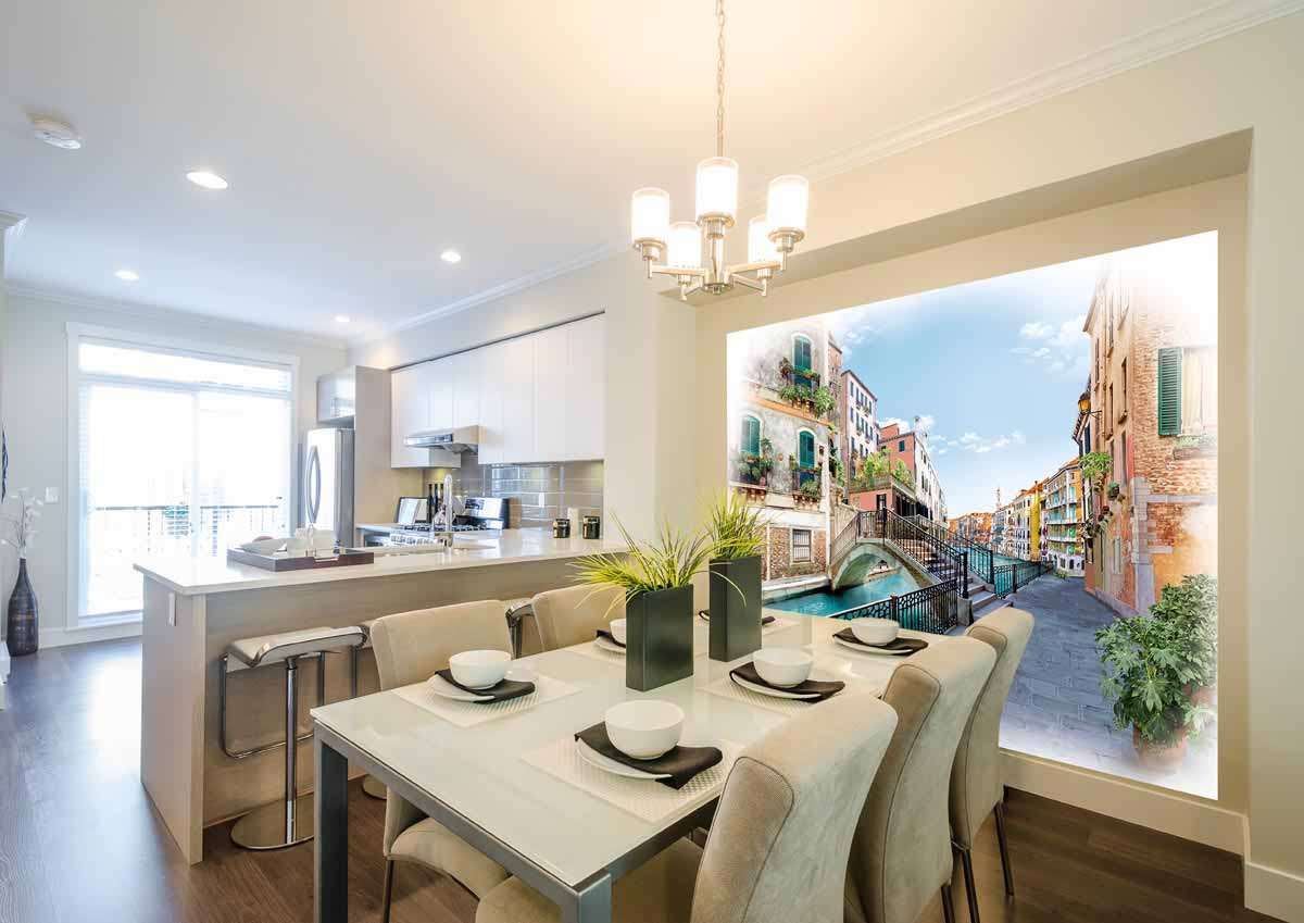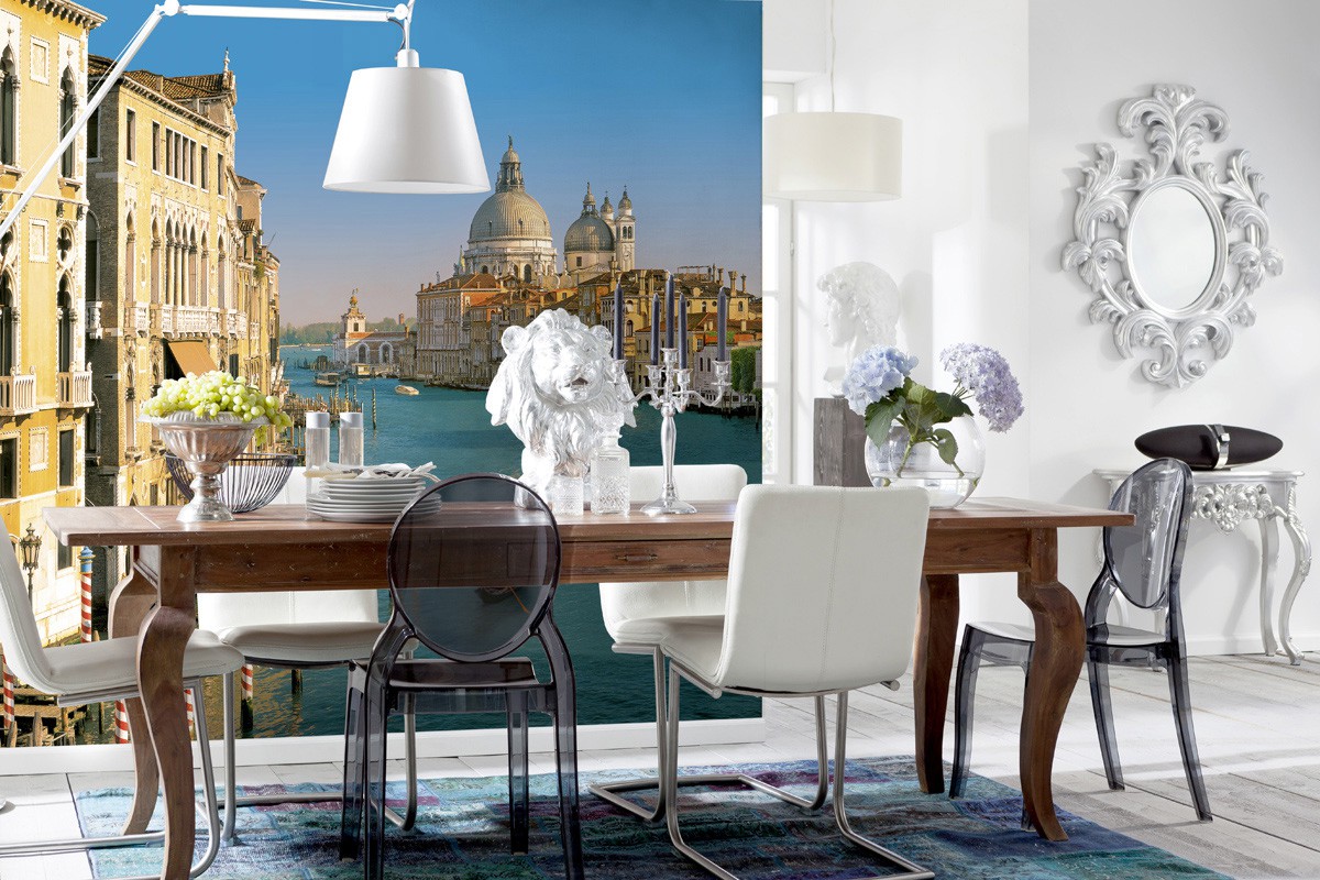 Em contraste com os pontos turísticos parisienses, conhecidos pelo mundo inteiro, o veneziano não é tão popular, por isso, na cozinha, é melhor ter outra coisa que lembre a cidade. Isto pode ser um ornamento nos pratos, várias lembranças e outras “dicas” sobre Veneza. Se você teve a sorte de visitar esta cidade, uma ótima maneira de capturar a memória será desenhar uma impressão com sua foto pessoal em papel de parede.