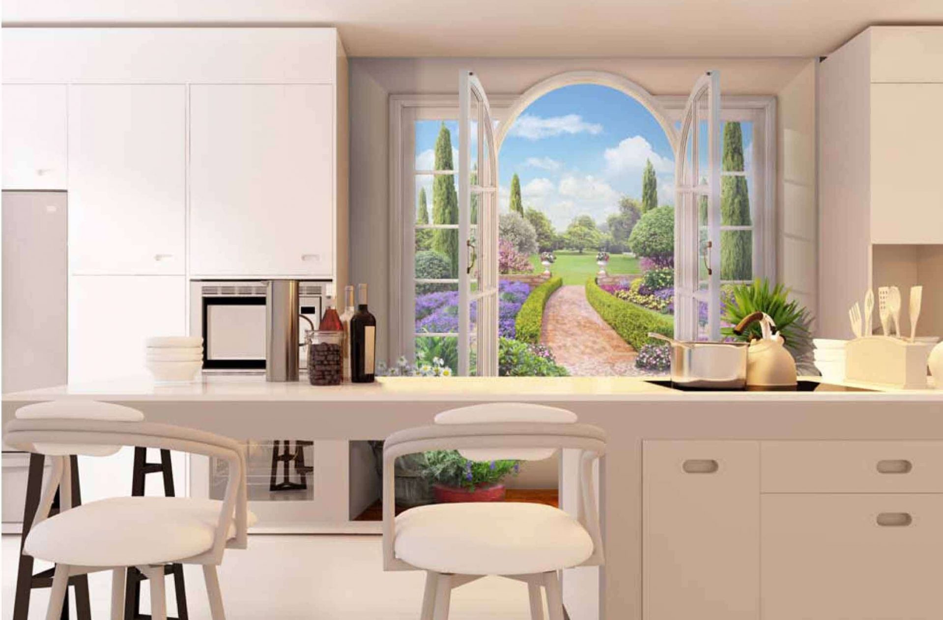 Estes papéis de parede ajudam a criar um bom humor calmante, com sua ajuda, você pode garantir-se uma eterna primavera ou verão. Depois que os trabalhadores da cidade todos os dias, contemplar tamanha beleza com uma xícara de chá na cozinha é um verdadeiro prazer. A impressão de alta resolução de alta qualidade cria as imagens mais vivas e ricas.