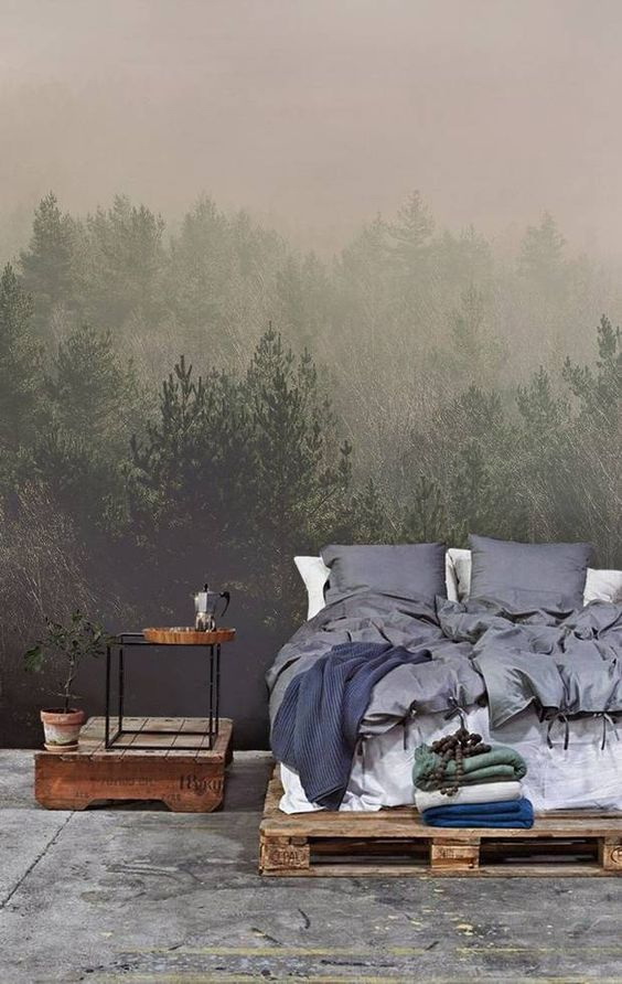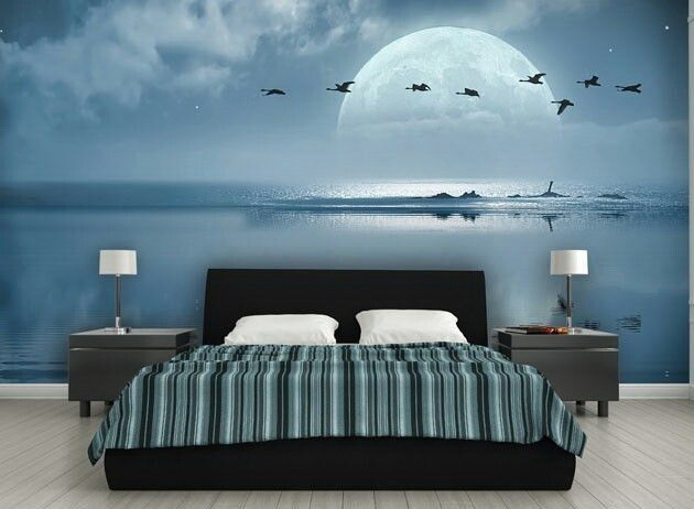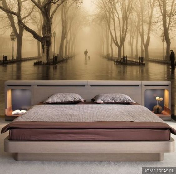 Em um quarto para dormir, uma foto na parede deve ser colocada em pacífica pacificação antes de uma vigília noturna. O enredo da imagem não deve causar irritação com cores brilhantes. Deve harmoniosamente se encaixar no design do resto do interior do quarto.