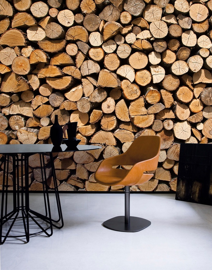 A textura pode ser aplicada em vários papéis de parede: vinil, não tecido e outros. Tais fotos são usadas - produtos no interior onde é necessário sublinhar um certo estilo de design.