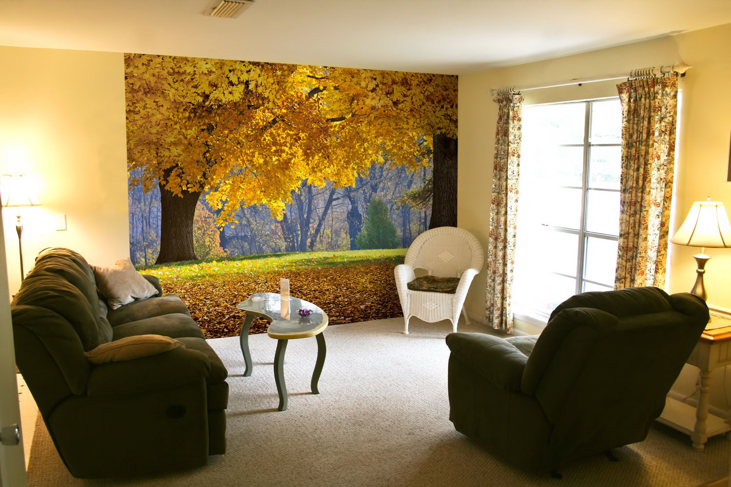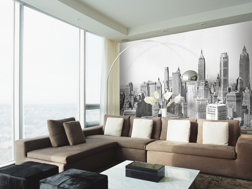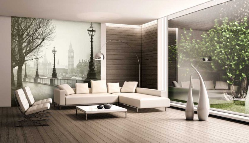 Sala de estar - a sala principal de qualquer habitação. Nela, passamos o máximo de tempo possível, relaxando enquanto assistimos programas de TV, nos comunicando e recebendo convidados. O aspecto da sala de estar é julgado pelo caráter e pelas predileções. Portanto, o interior desta sala deve ser criado com atenção especial. O uso de papéis de parede fotográficos ajuda a dar-lhe uma aparência maçante e memorável, dando ao quarto exclusividade e modernidade.