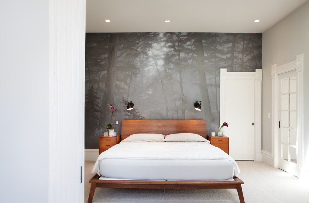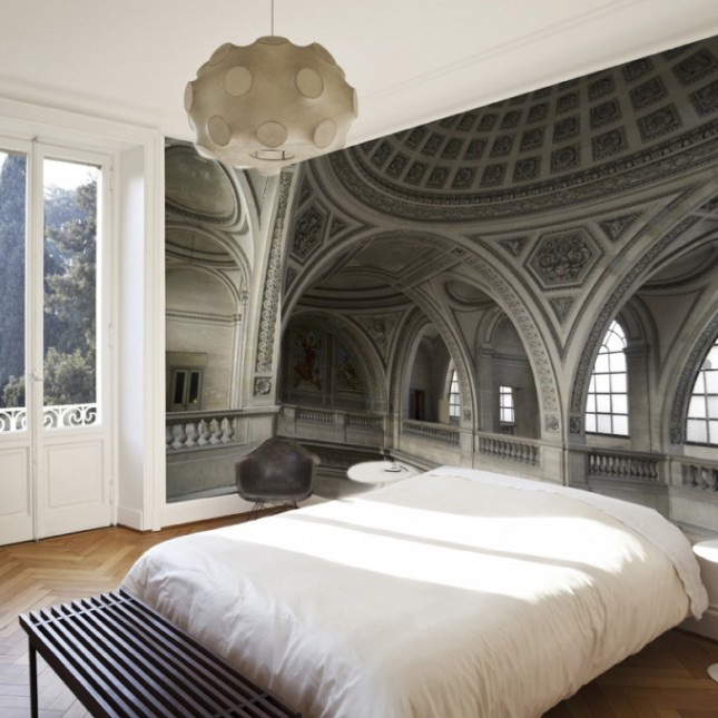 Que tipo de papel de parede para escolher, espero que você tenha decidido. Mas para o local de colagem deve ser abordado minuciosamente. Sua localização desempenha um papel não apenas na percepção estética, mas também afeta, e seriamente, a geometria da sala. No quarto, eles geralmente são colocados na cabeceira da cama, nos tetos, ao redor do perímetro da parede de aceitação.