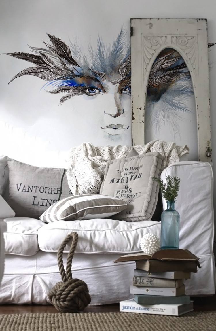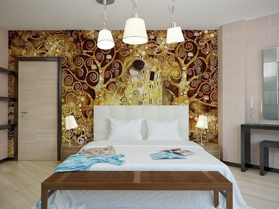 - Ênfase. Colocar uma imagem brilhante pode servir como elementos de distração ou, inversamente, como atraente. Muitas vezes é usado quando o quarto é velho. mobíliaou o interior é feito em tons chatos.