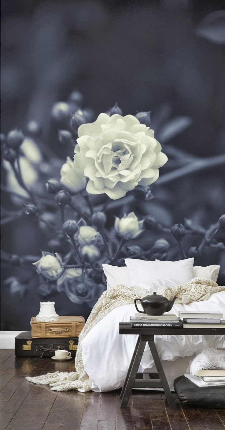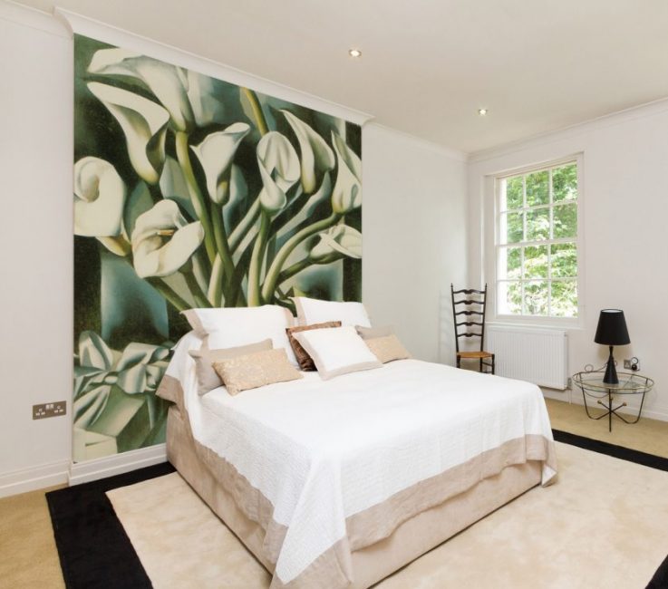 A variedade do mundo das flores é muito ampla, desde pastéis delicados a um brilho brilhante de cores, o que torna possível considerar o tema da flor bastante popular. Photowall de papel com a imagem de flores na cabeceira da cama escolhe, segundo as estatísticas, a cada 2 ou 3 clientes. Tal popularidade pode ser explicada pelo fato de que fotografia Flor para decoração de parede é muito fácil escolher um projeto de design de qualquer estilo.