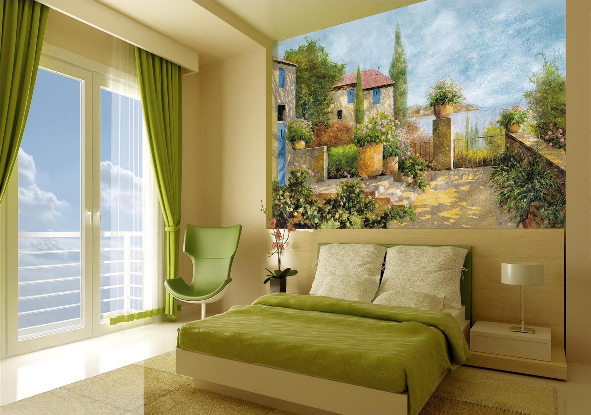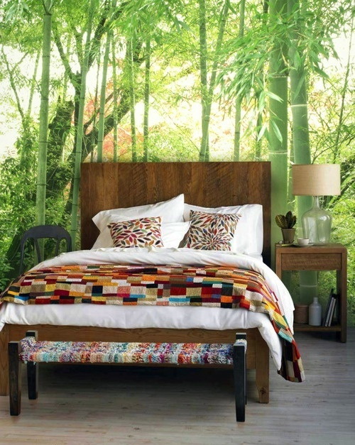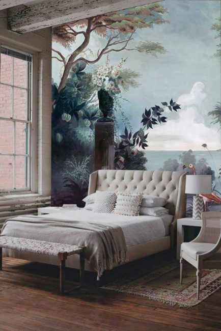 - Mudança de espaço. Motivos naturais que aumentam visualmente o espaço quartos, por exemplo, um bosque ou floresta, com um caminho que leva à distância.