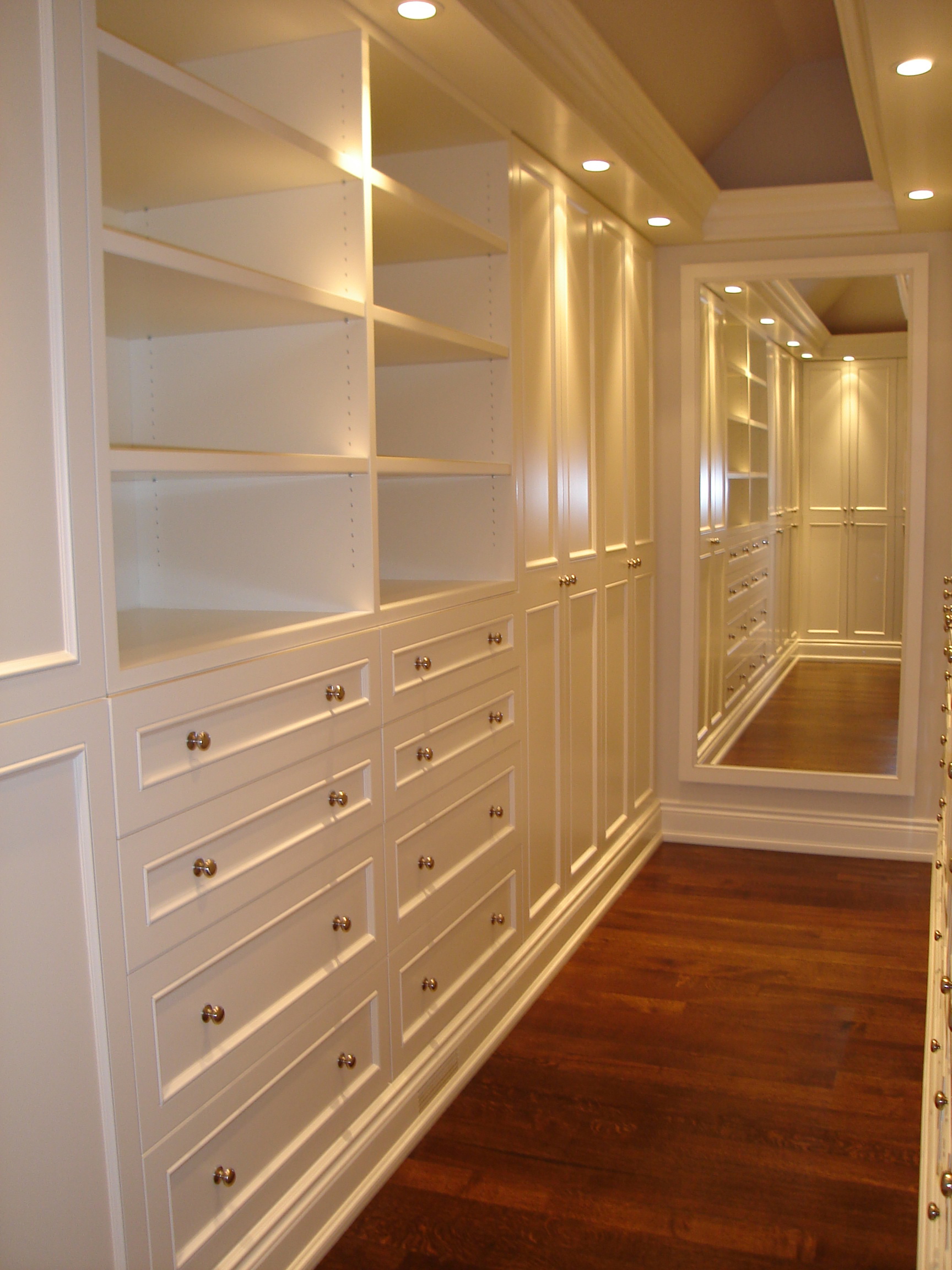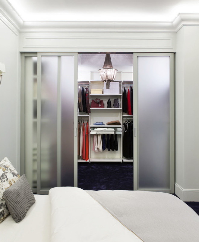 Sistemas modulares podem ser instalados por especialistas em guarda-roupa, ou você pode seguir seu próprio caminho e instalar seus próprios conjuntos completos de melamina pronta para montar ou painéis de madeira.