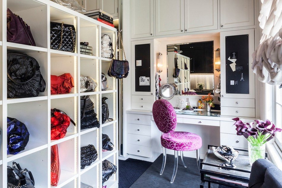 O guarda-roupa deve levar em conta o conforto das mulheres, fornecendo caixas para pequenos itens. Por exemplo, eles podem armazenar pincéis, threads, agulhas e outros dispositivos.