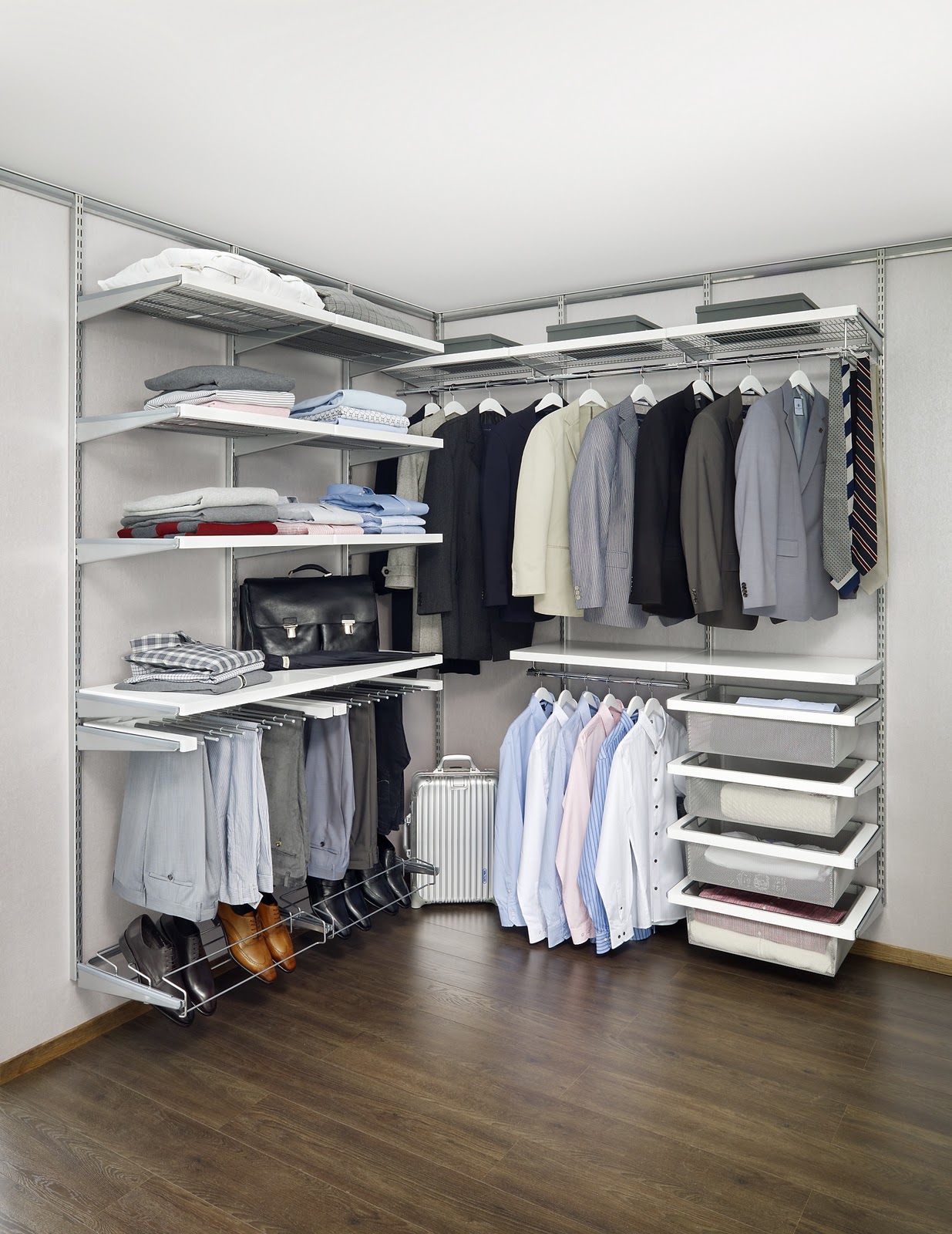 Os sistemas de guarda-roupa suspensos também são relativamente fáceis de instalar e podem ser uma ótima solução para alguns tipos de organizações. A melhor solução é frequentemente uma combinação de vários tipos de guarda-roupas de sistema que permitem que você use até mesmo um espaço não-padrão ou desconfortável.
