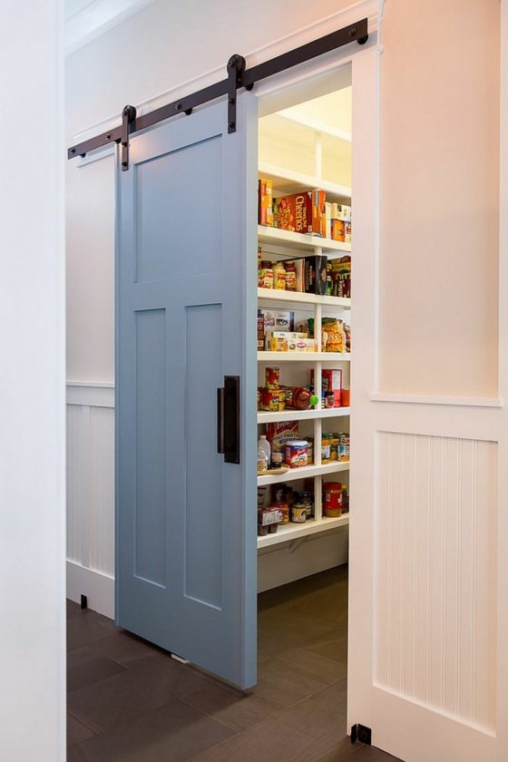 A instalação de portas na porta da despensa nem sempre atende a todos os nossos desejos, pois é limitada a cantos e pequenas imagens. Portanto, a opção mais conveniente aqui - portas de correr - geralmente não é adequada. Gostaria de me debruçar sobre a opção de portas têxteis elegantes - pendurar uma abertura com cortinas na cor das paredes ou em contraste. Tal saída se adapta a qualquer decoração, suaviza o espaço e preenche o papel principal atribuído - fechar a sala a partir das vistas e permitir que ela entre confortavelmente.