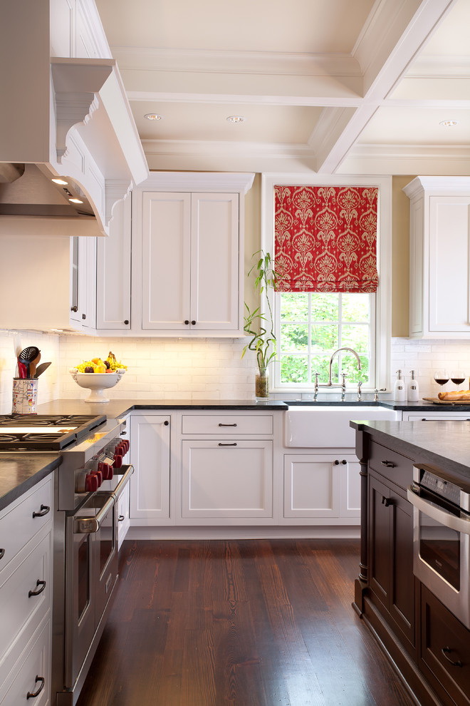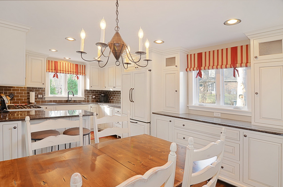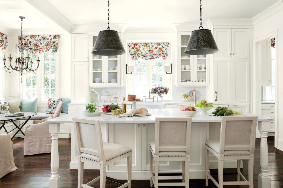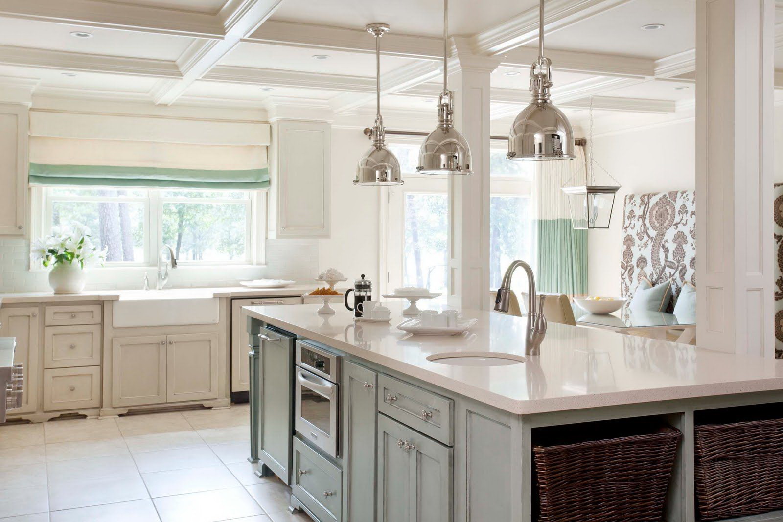 - Inserções assimétricas podem equilibrar as janelas deslocadas e dar à cozinha um som mais moderno.