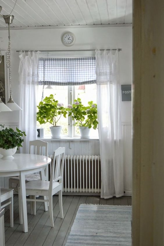 Você pode criar variações interessantes com texturas transparentes e sutis. Deixe a cortina de base branca ou perto de para brancopara não criar um obstáculo à luz do sol.
