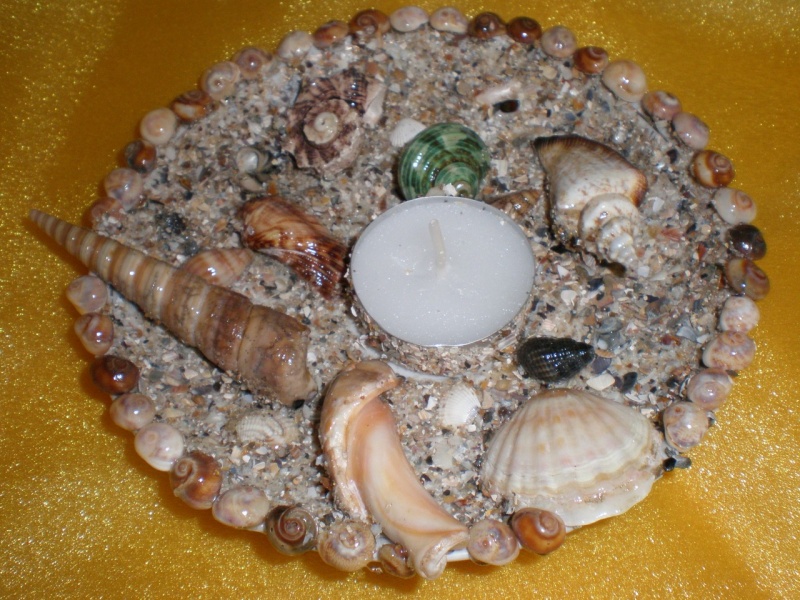 Nós pintamos as conchas, cada uma em uma cor diferente. Deixe-os secar, cubra a superfície com esmalte transparente. As conchas restantes grudam em pequenas fichas. Cole as conchas no disco, polvilhe com migalhas de casca, imitando a superfície do fundo do mar. Além disso, decoramos o produto com pedrinhas transparentes e miçangas.