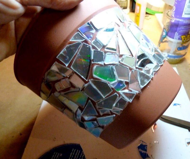 Transformar um vaso comum em um pote mágico é mais fácil do que nunca. Você precisará de CDs antigos, tesouras, pistolas de cola e um pouco de imaginação.