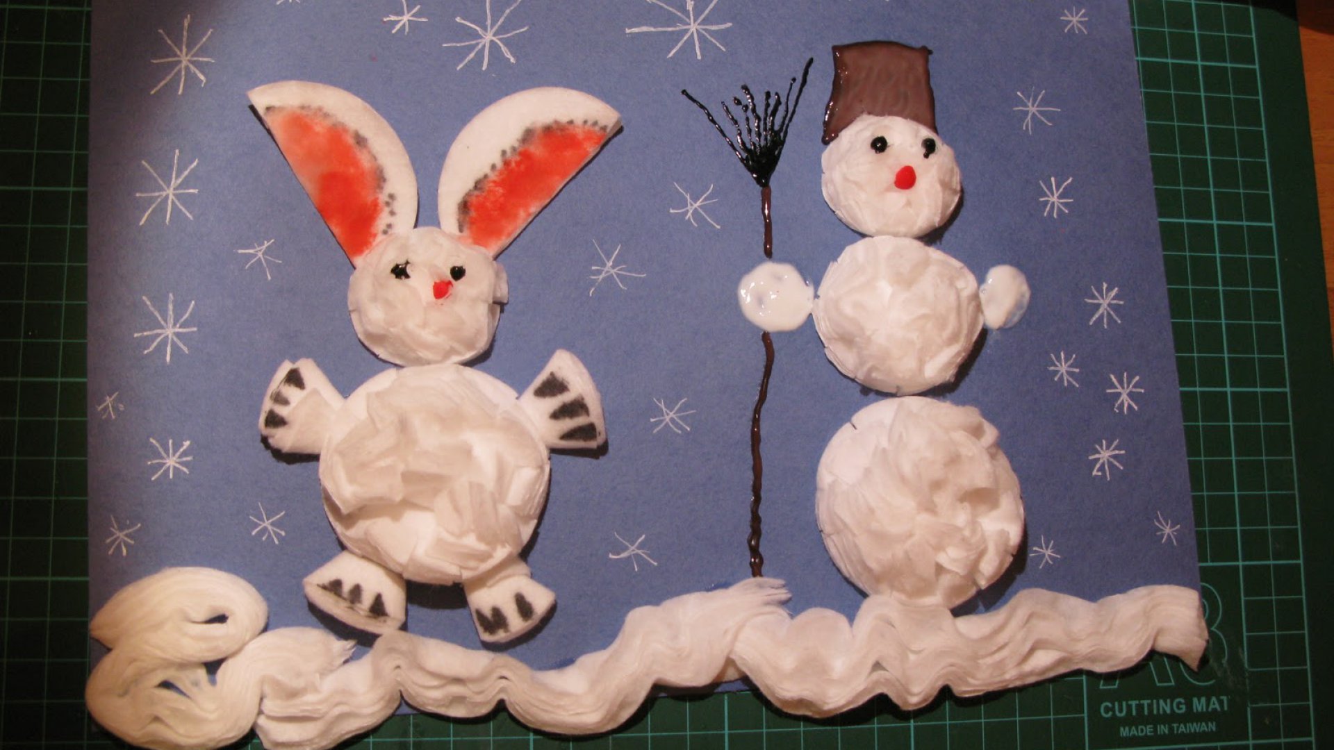 Para dar às crianças um feriado de verdade, elas não precisam de muito, os pais simplesmente precisam levar um pacote de almofadas de algodão, uma folha de papelão branco e ter paciência.