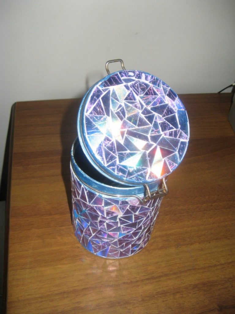 Este material colorida brilha ao sol, tem uma superfície brilhante e brilhante. Esta propriedade pode ser usada para decorar vários itens: caixas de jóias, molduras de fotos, vasos, vasos de flores.