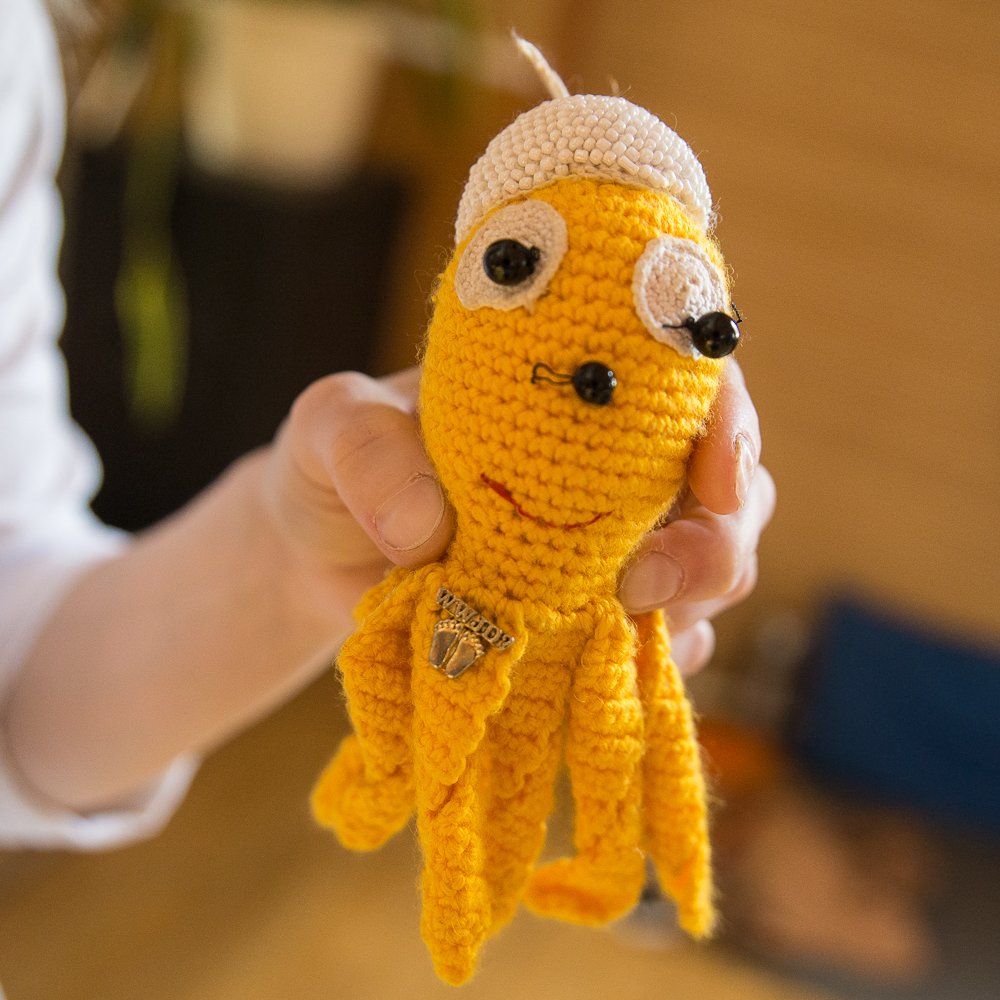 - É necessário colocar o fio em várias camadas para um comprimento de 50 a 60 cm Para que o polvo seja grande, você pode precisar de mais de um novelo de fio.