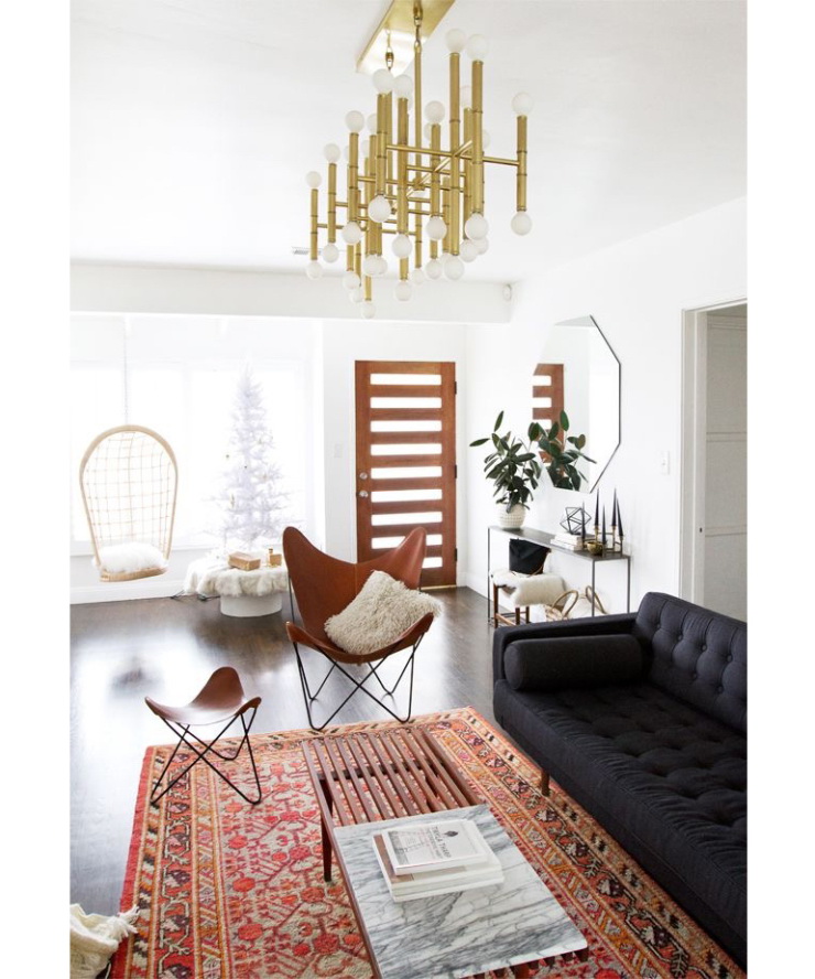 Tente misturar o antigo com o novo. Cubra o chão da sua sala de estar com tapetes macios, taças de vime e cestos cheios de objetos naturais, como: