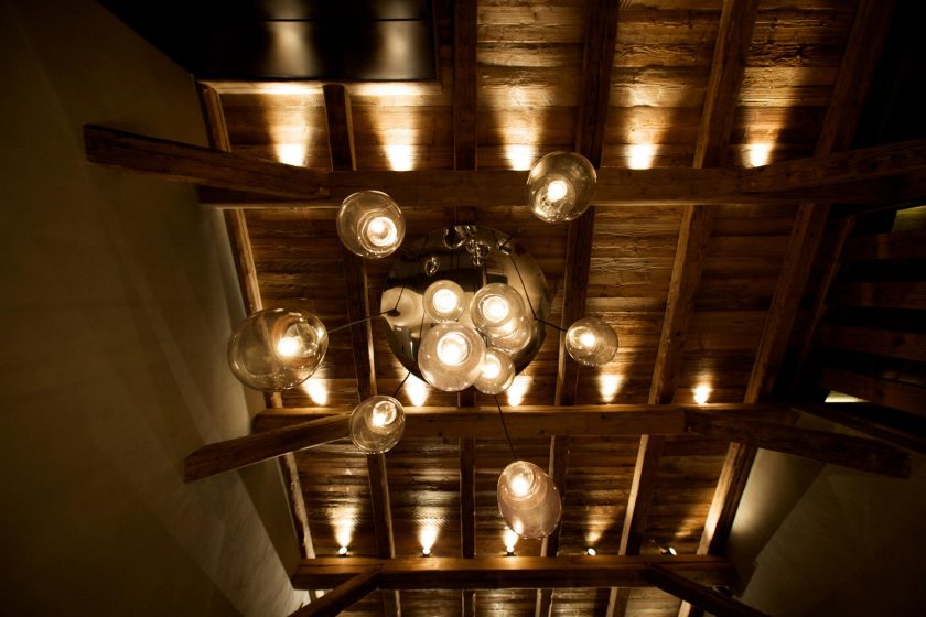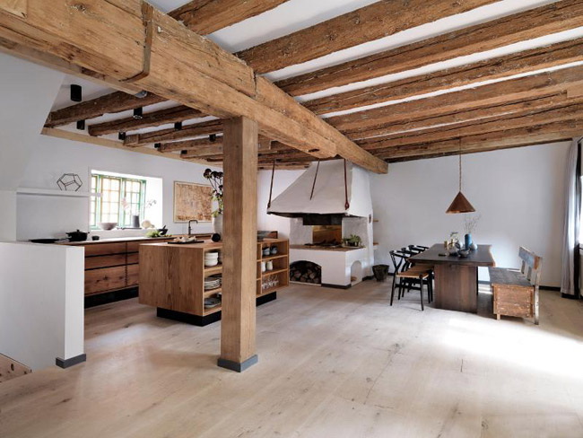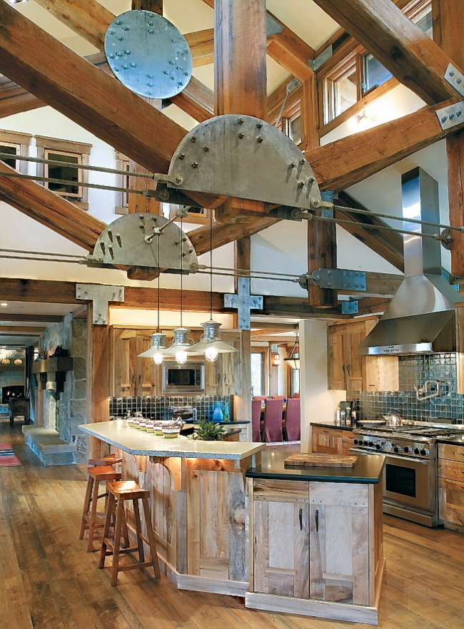 - decorado com vigas, pilastras, outros elementos de madeira;