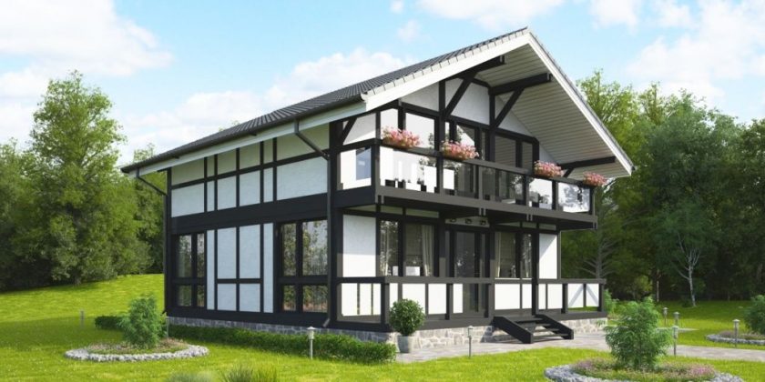 Uma casa em estilo de chalé feita de madeira com uma cornija no telhado não é apenas uma casa confortável, mas muito prática. Eles são adequados para o mau tempo, em geral, para um clima frio. A estrutura de madeira é feita em um estilo muito simples, mas muito bem organizado.