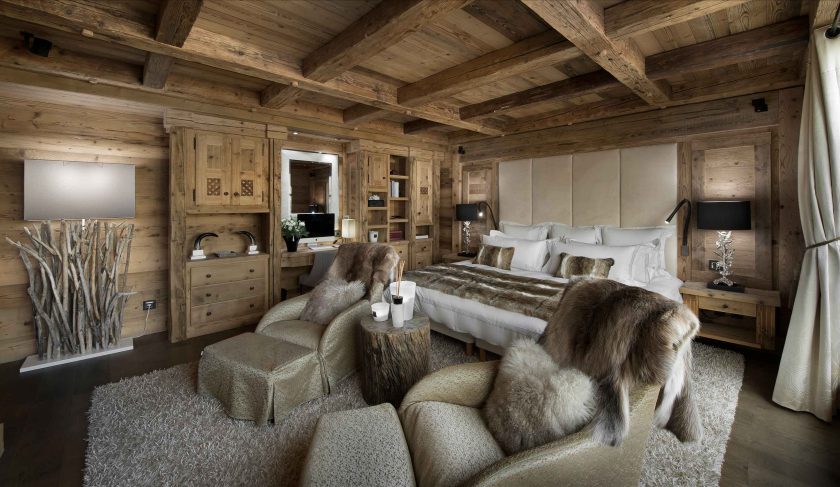 Como você pode ver, a maioria dos chalés tem muitos materiais naturais, como madeira e pedra, assim como couro em móveis, e depois pele e lã em acessórios.