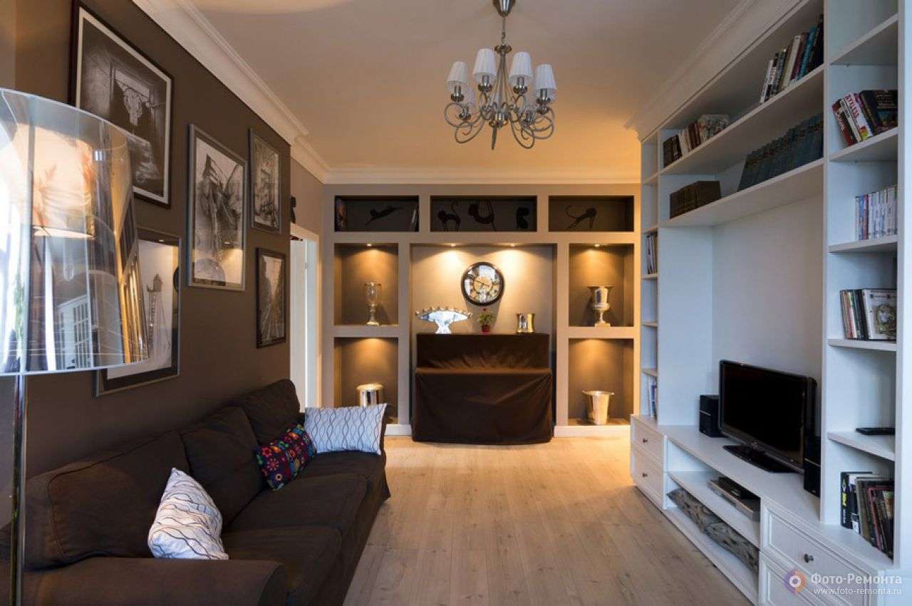Criando o fundo da sala de estar e a escolha do mobiliário - os principais pontos da formação do interior. Mas sem iluminação adequada, todos os esforços empreendidos podem não ter efeito.