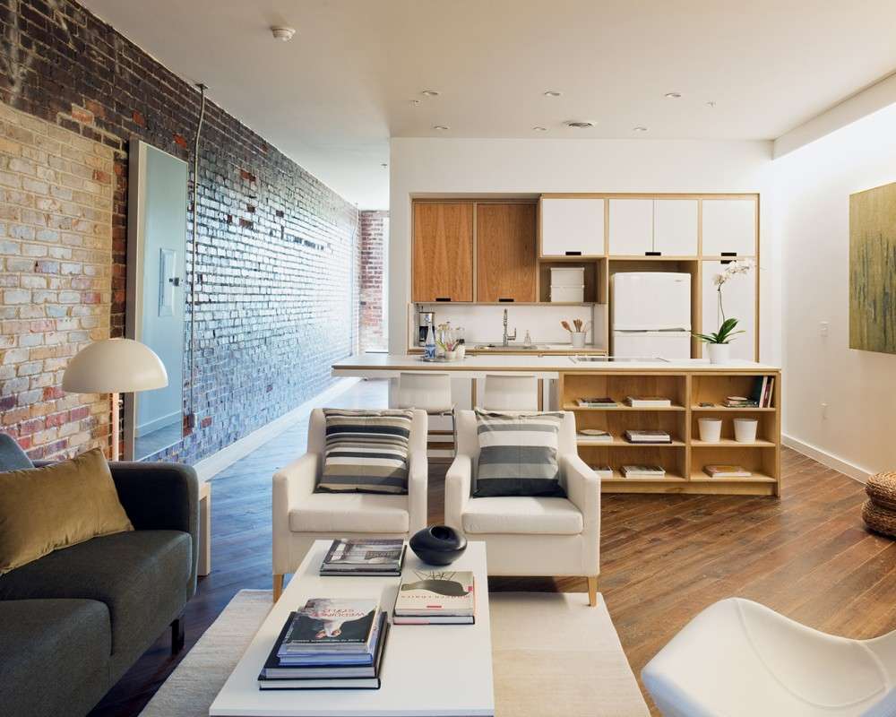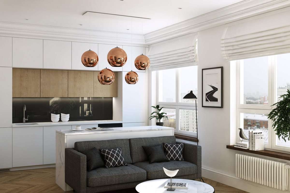 Essa opção é considerada uma solução bastante simples para o problema de espaço pequeno. A combinação de dois quartos pode ser feita com a ajuda de uma abertura estendida entre os quartos ou na forma de um arco, combinado com balcão de bar.