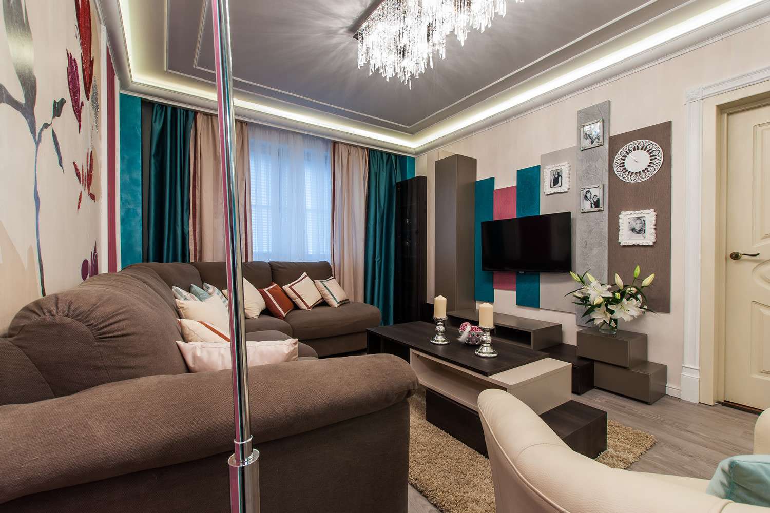 Se a sala de estar tem uma área pequena, quão justificada é a sua divisão com a ajuda de partições adicionais? Se necessário, coloque na mesma sala vários zonasPor exemplo, recreação e recepção de convidados, tal divisão pode ser plenamente justificada.