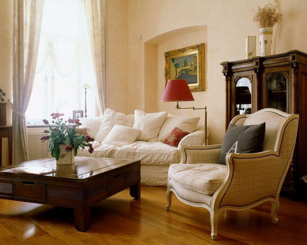 Nesta decoração interior não deve ser muito. Antiguidades e coisas com história são bem adequadas para decoração: