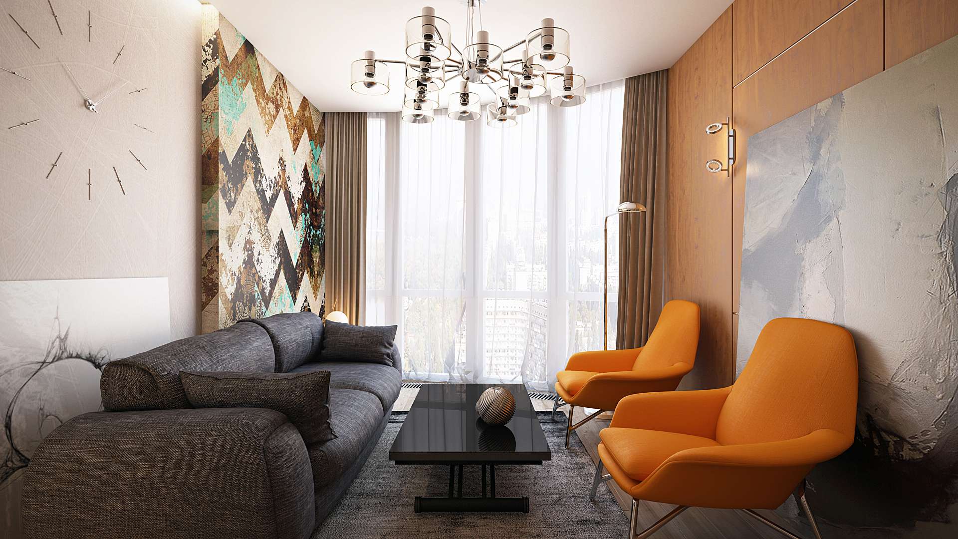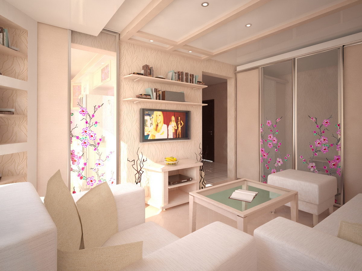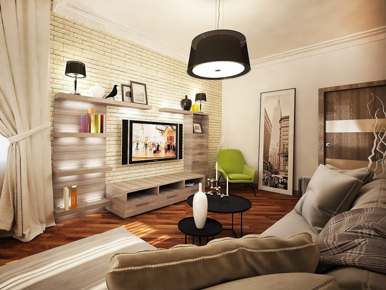 Abordagens complicadas são a incorporação de decisões incomuns na área que foi reservada inicialmente para a sala de estar. Para isso, um jogo com cores e tonalidades é aplicado, a escolha de móveis adequados, acessórios.