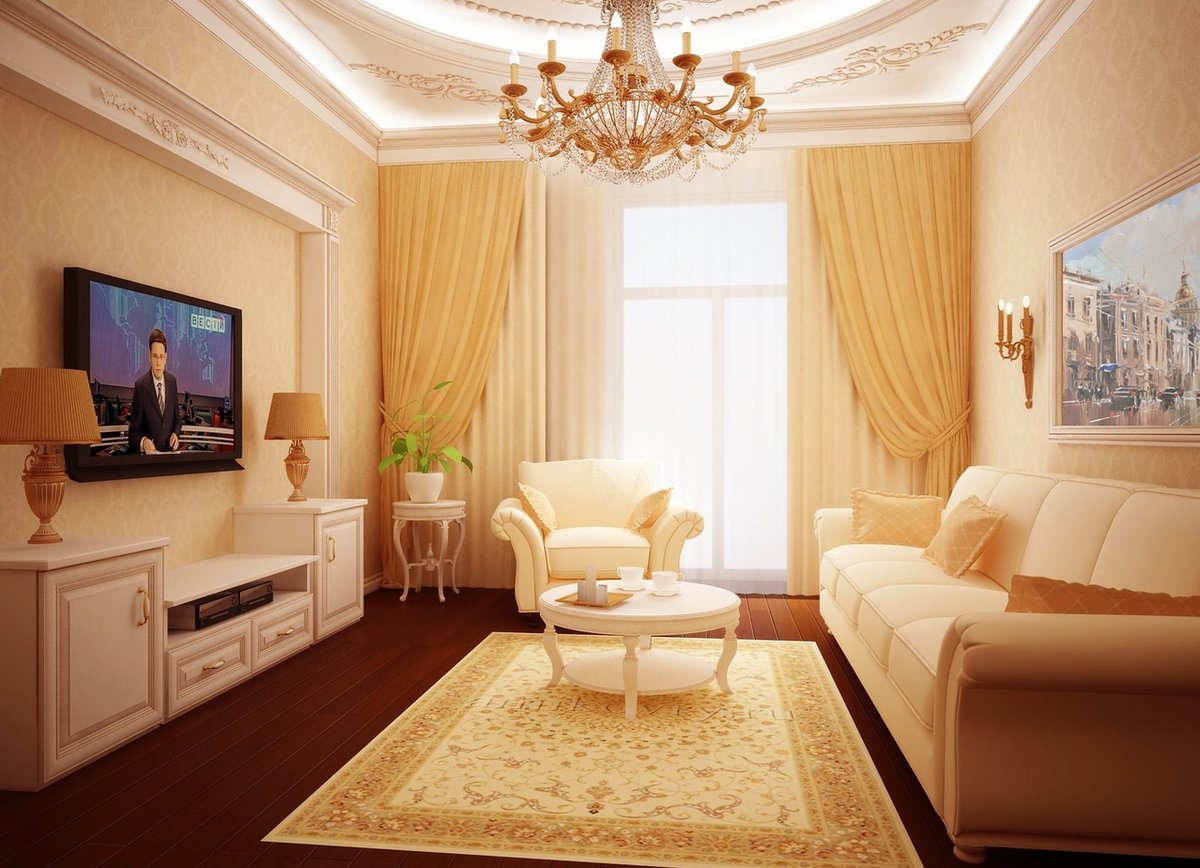 O interior clássico em uma área limitada é muito difícil de recriar na íntegra. Clássico requer móveis sólidos de boa qualidade, o uso de materiais naturais e tons nobres.